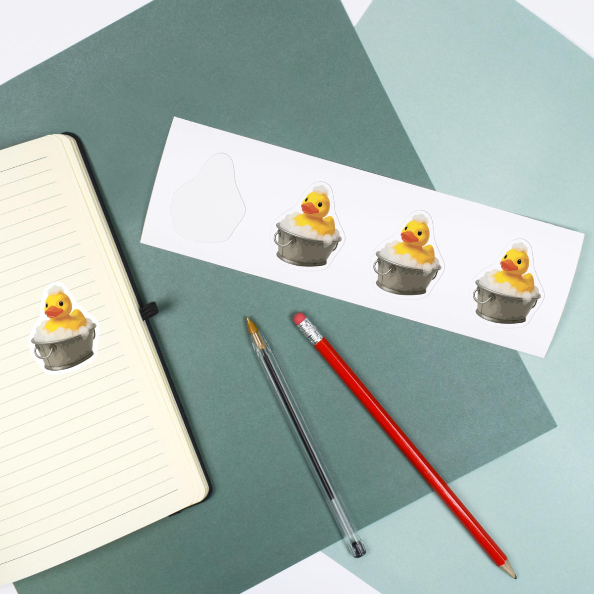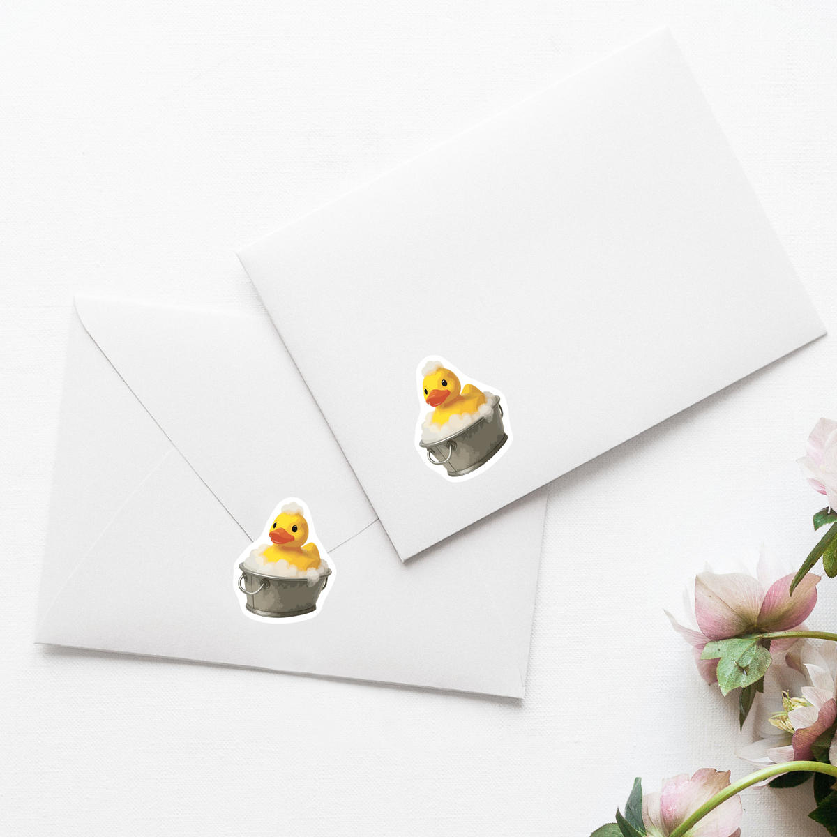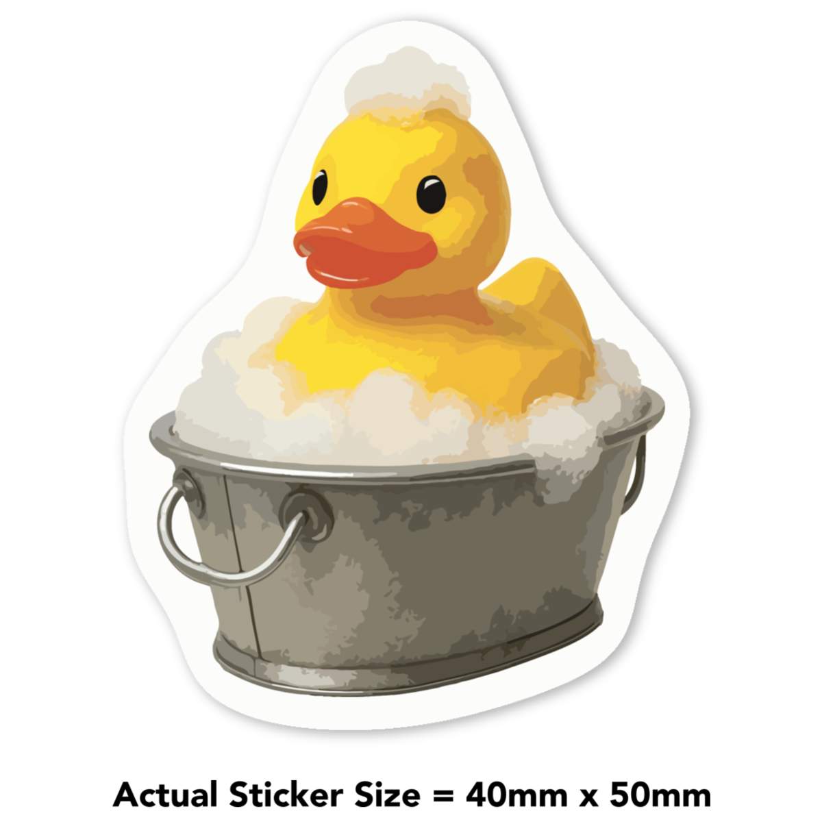 'A cute design of a rubber ducky enjoying a bubble bath in a bucket, symbolizing playful fun and nostalgia.'