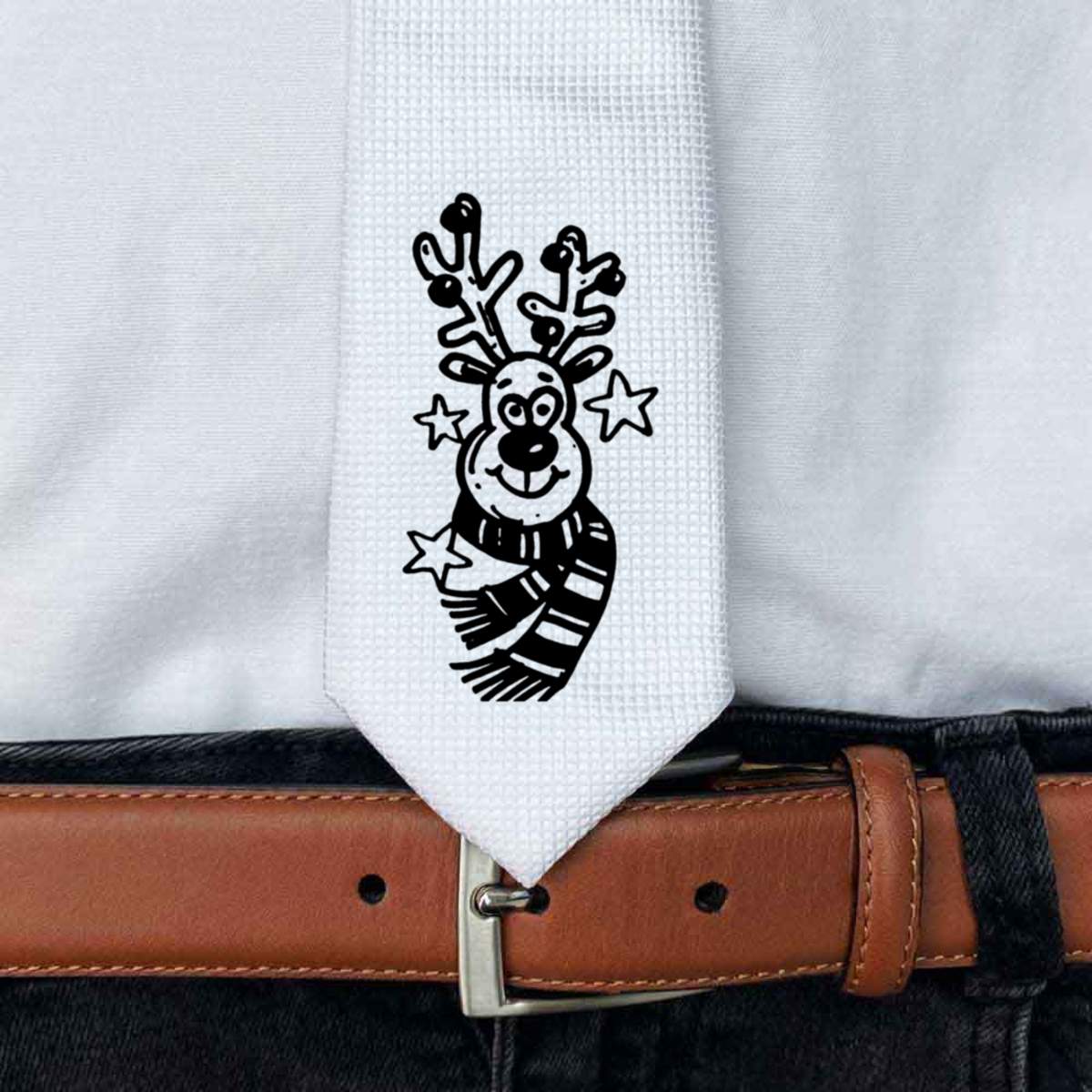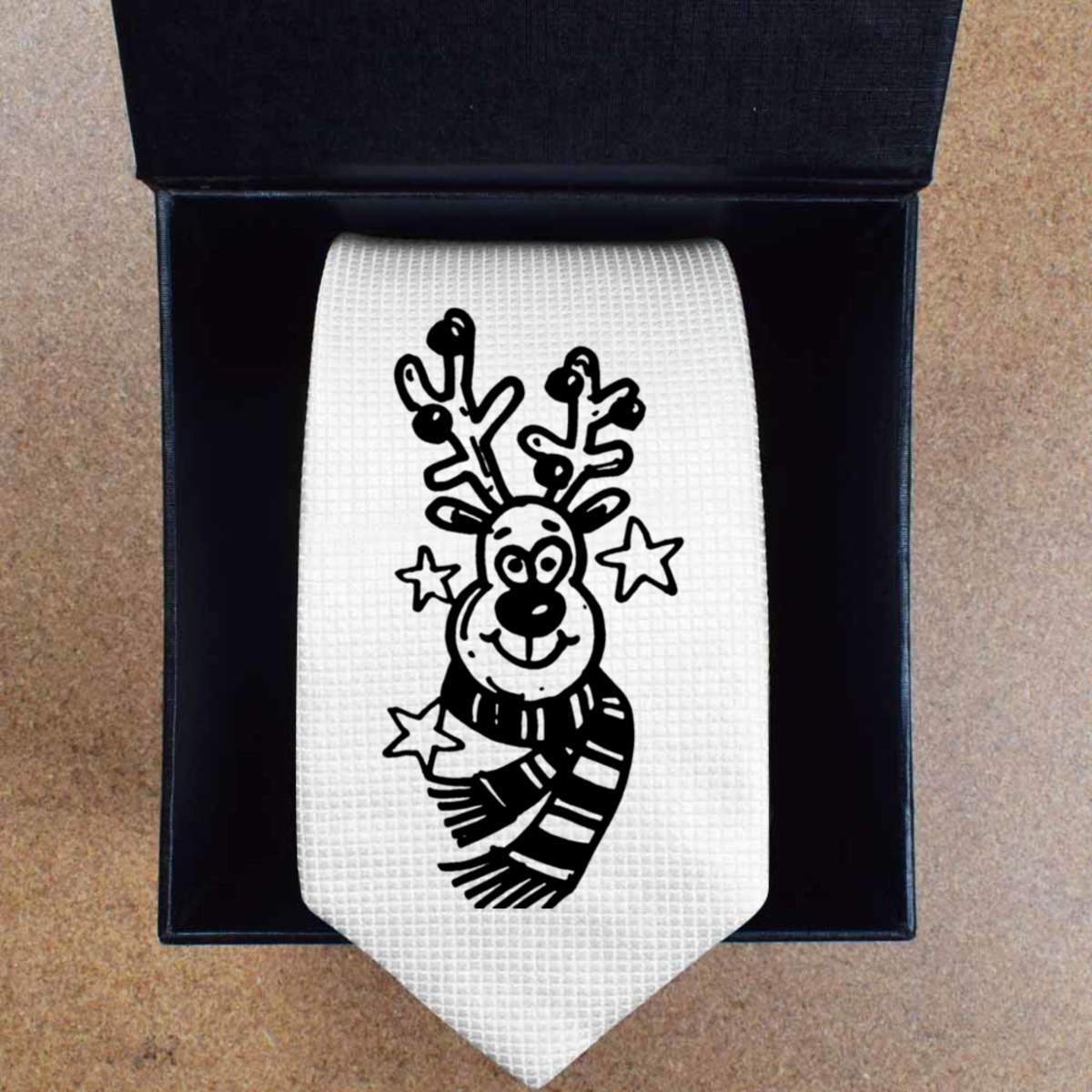 'Rudolph Wearing Scarf' White Tie / Necktie with Gift Box (AT00012003)