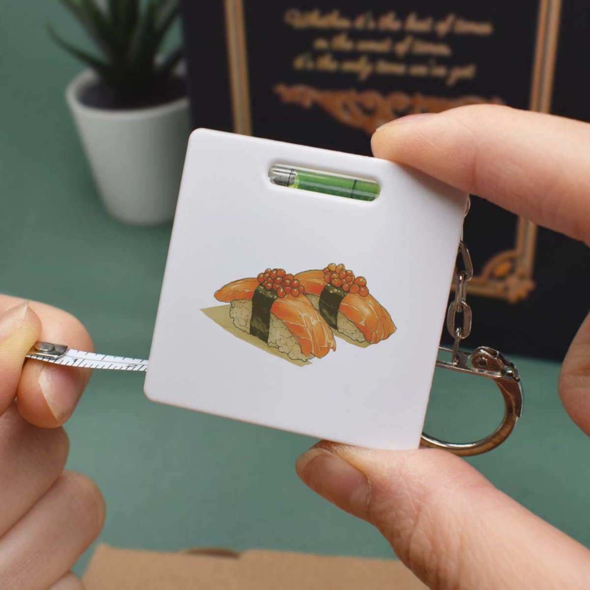 This multifunctional tool offers both a tape measure and spirit level in one handy little accessory. The retractable, 1 metre tape measure has both imperial and metric units, while the flat edges around its plastic casing provide the ability to check both vertical and horizontal surfaces with a mini spirit level. The compact and lightweight design makes it easy to carry around; simply attach with the keychain provided and whip it out when needed. Each keyring tape measure tool is printed on one side with a unique design.