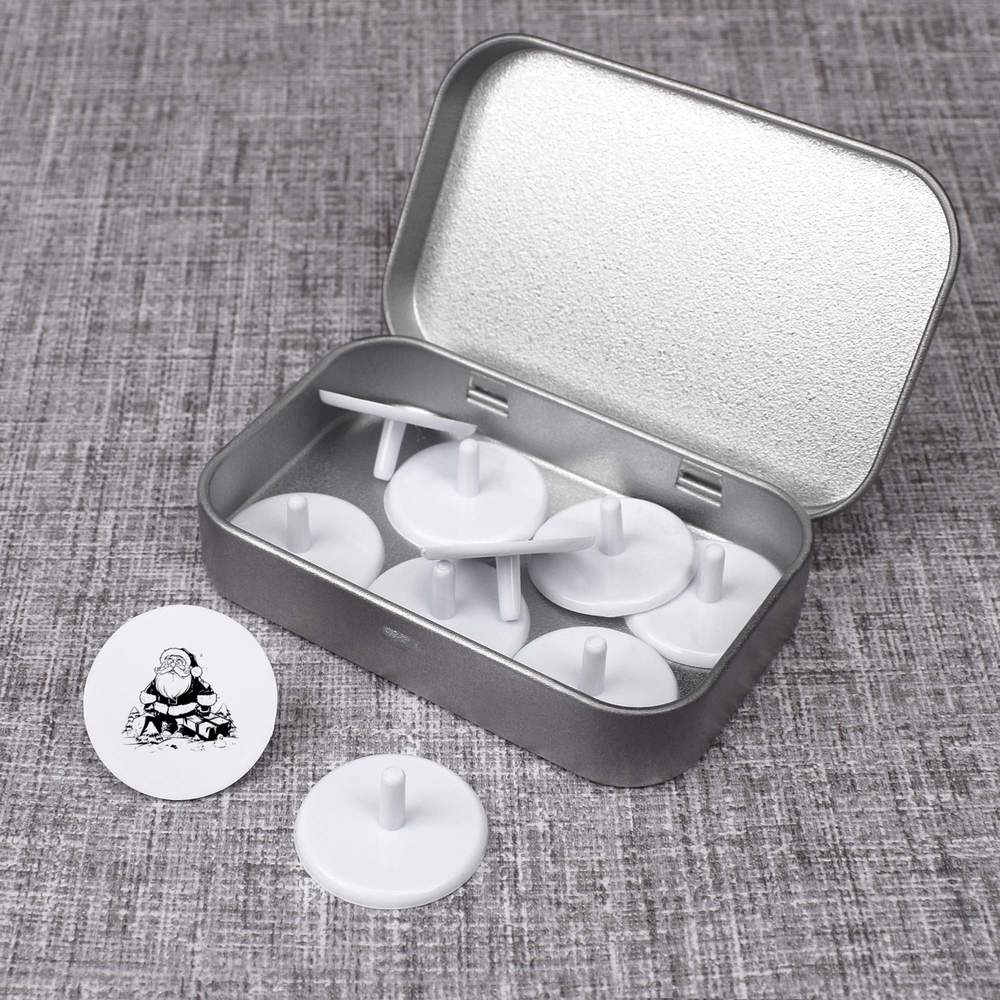 A fantastic gift for any golfer! This set includes 10 plastic golf markers, each printed on one side with a unique design. All 10 markers come in a small tin with a matching design printed on the lid.