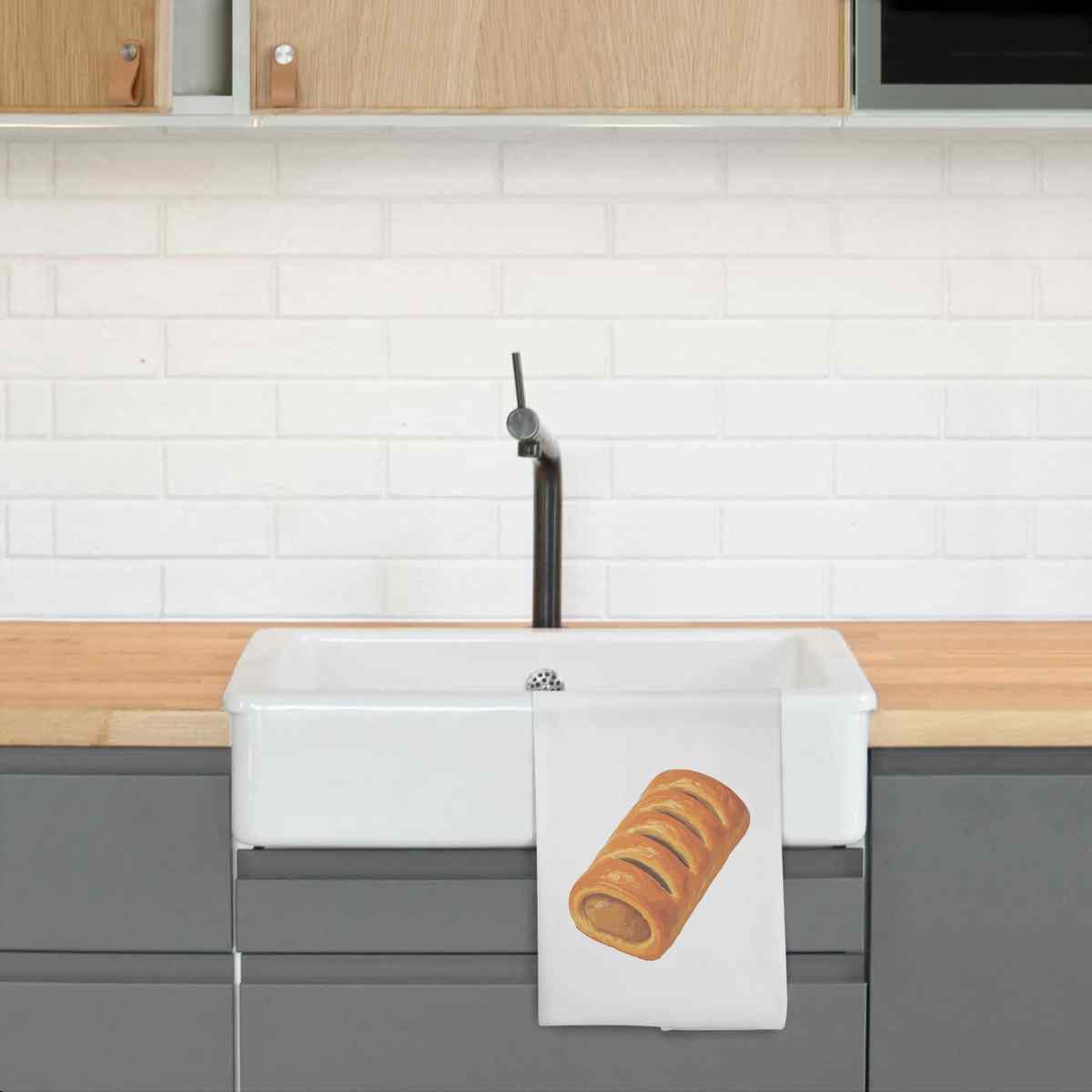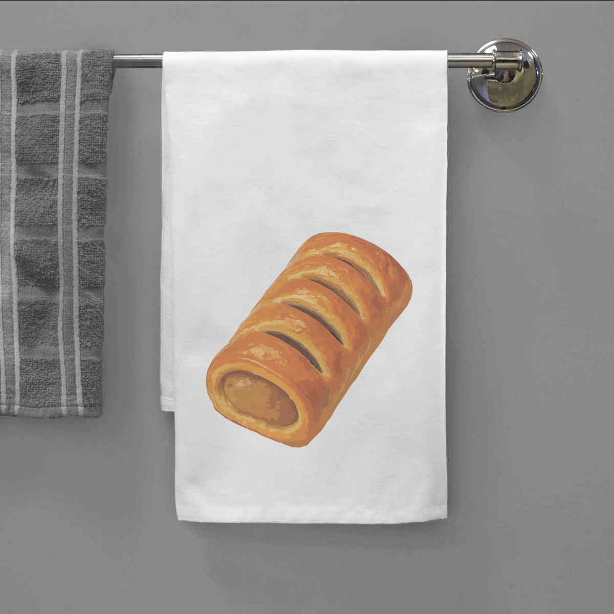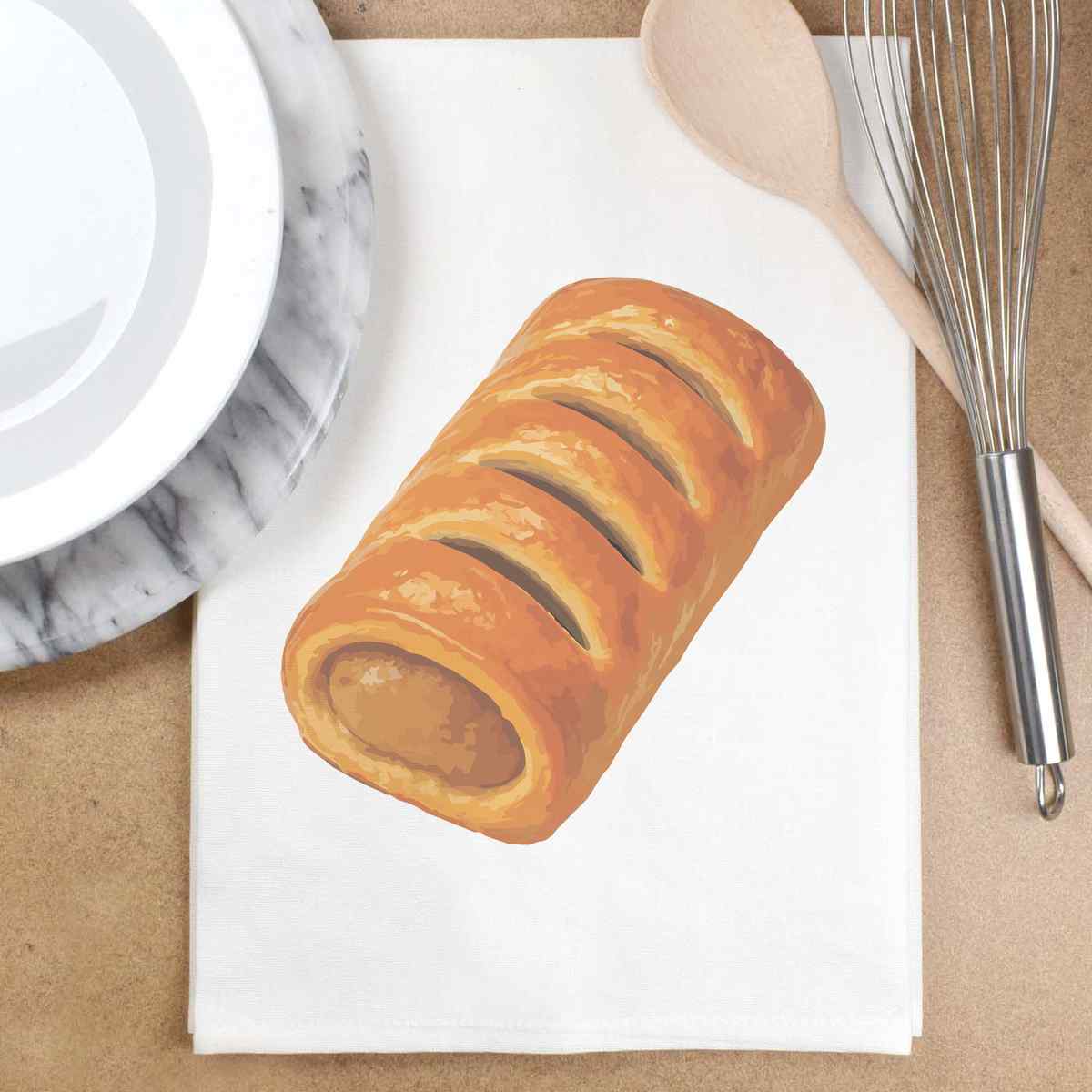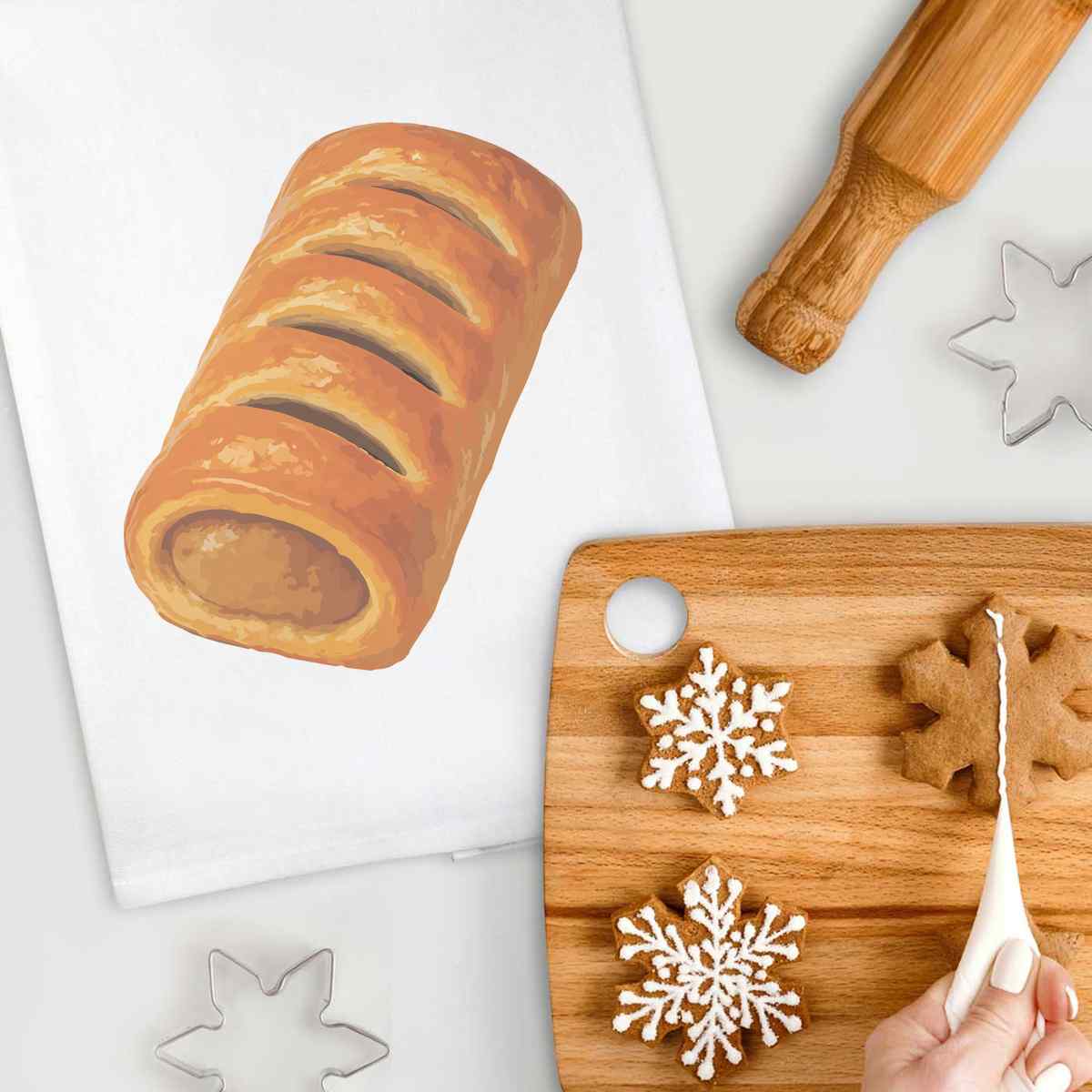 'A simple yet mouth-watering design of a classic sausage roll, celebrating a beloved and popular British pastry snack.'