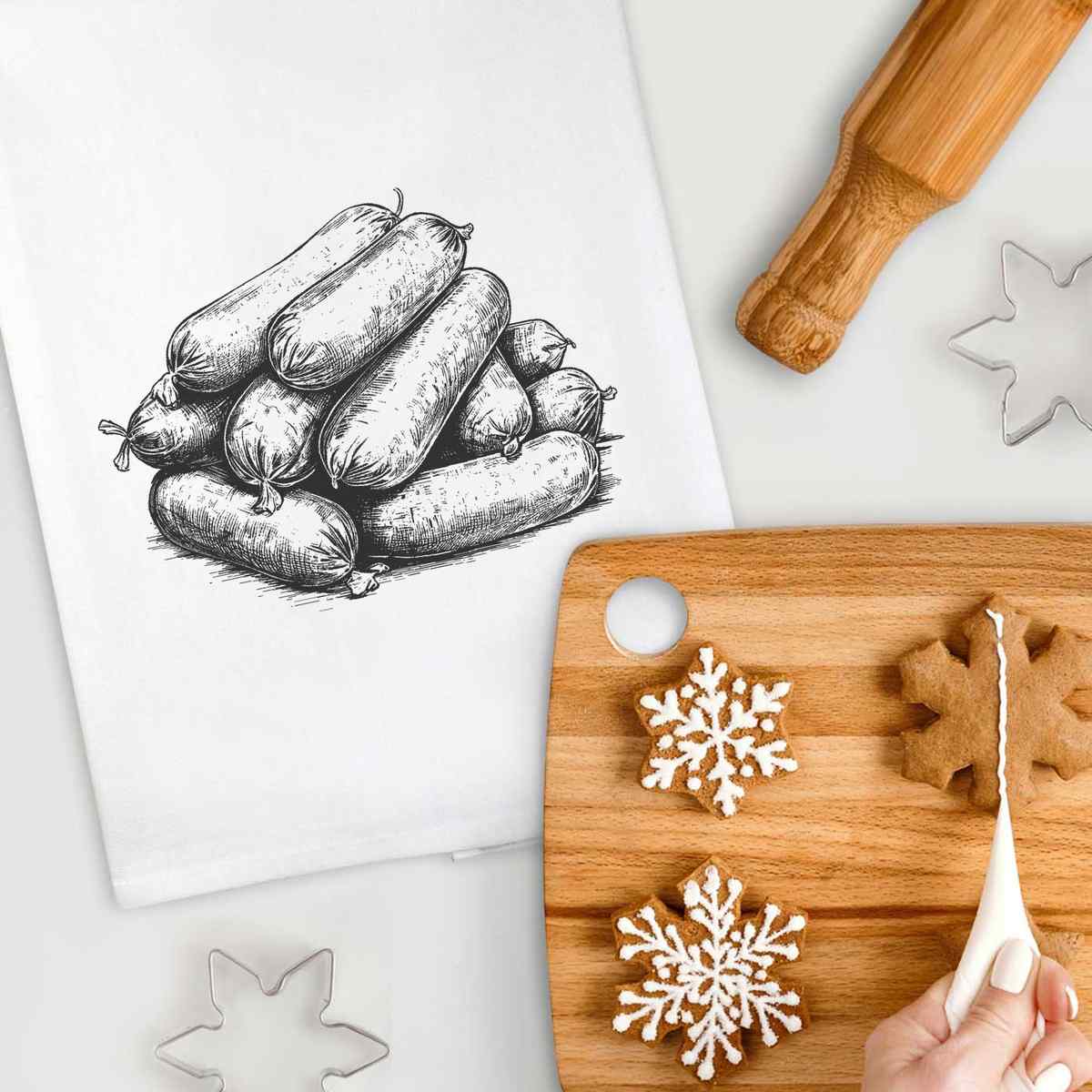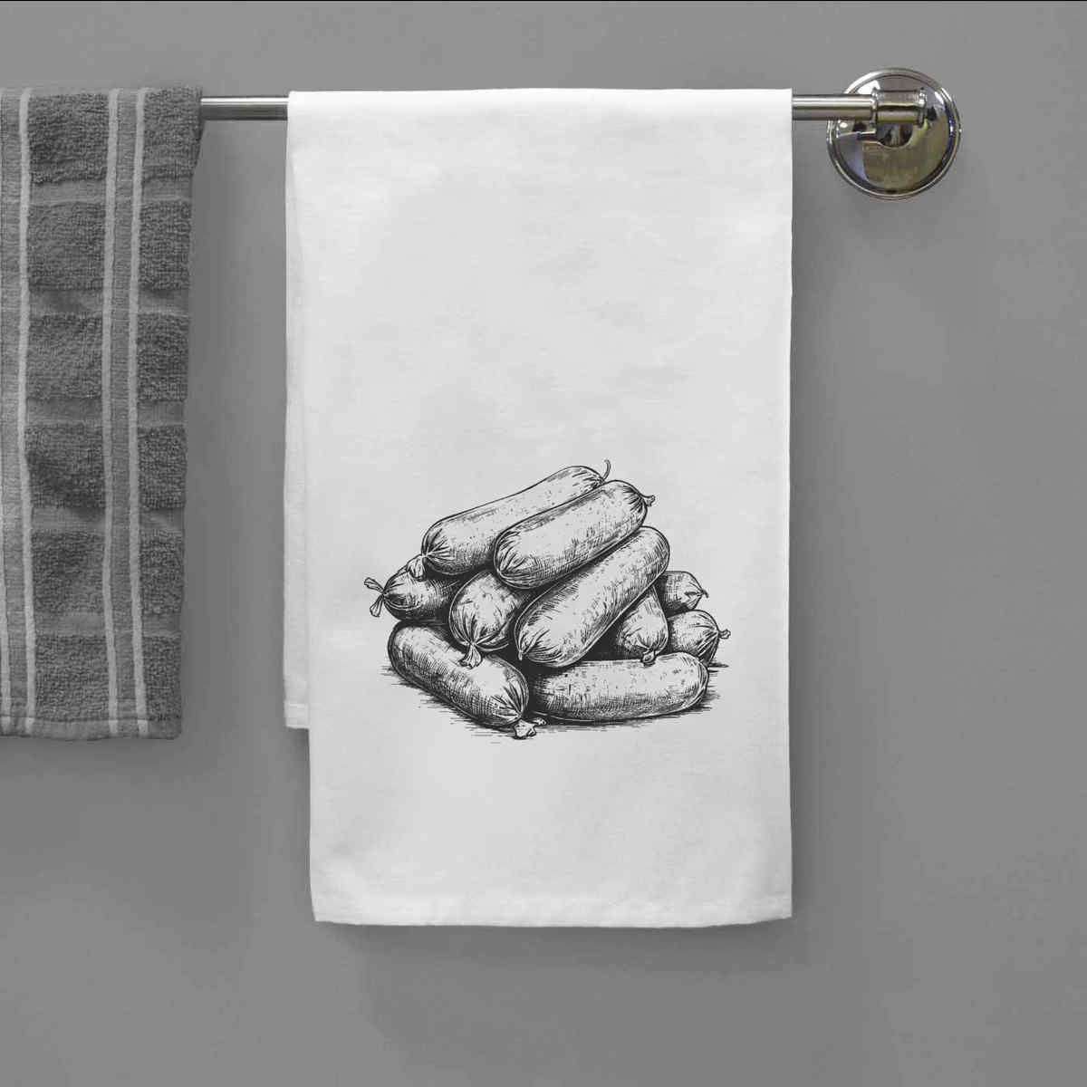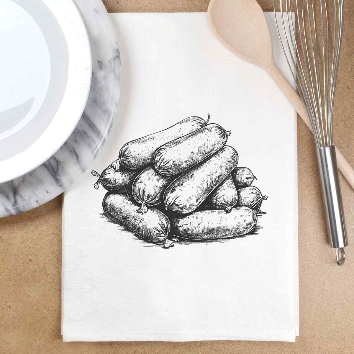 'sausages' White Cotton Tea Towel / Dish Cloth (TW00032993)