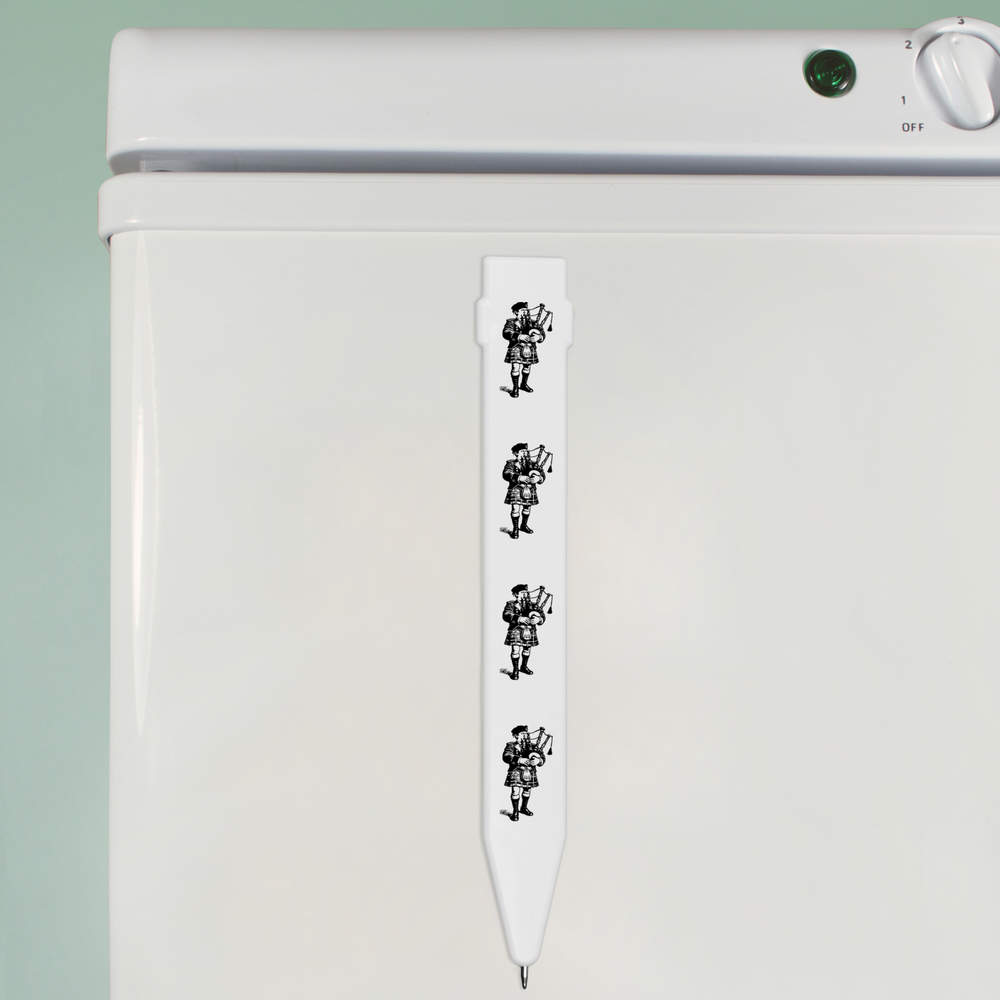 - A flat ballpoint pen with magnetic strip on the back