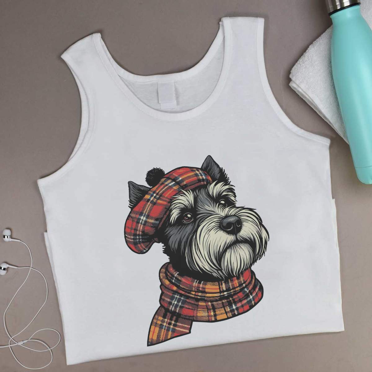 'Image of a Proud Scottish Terrier Wearing a Tartan Hat and Scarf'