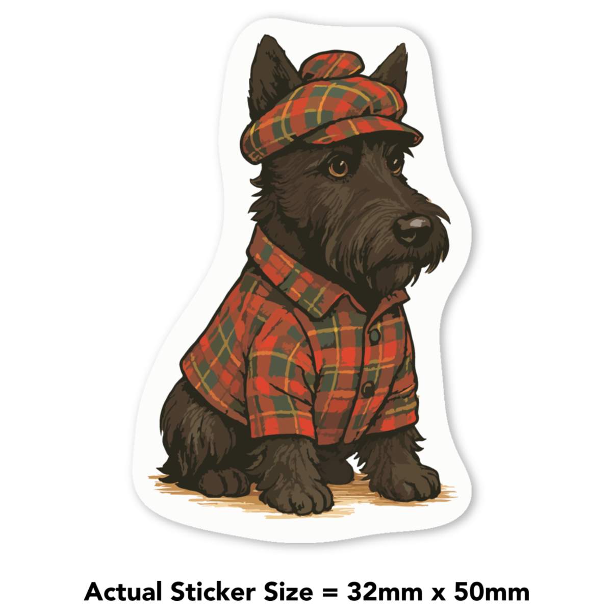 'A Scottish highland terrier wearing traditional tartan Scottish clothing.'