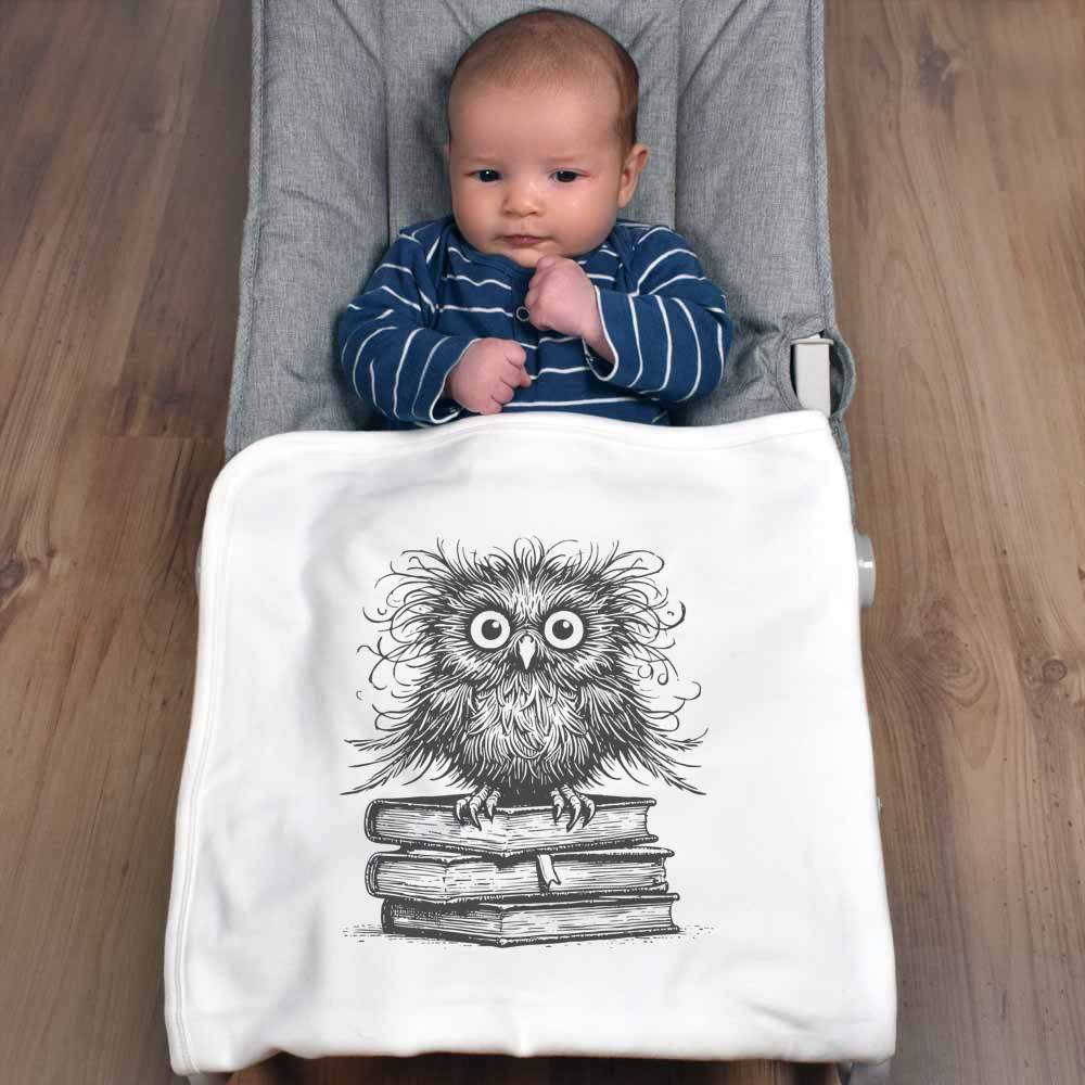 'Scruffy Book Owl' Cotton Baby Blanket / Shawl (BY00039490)