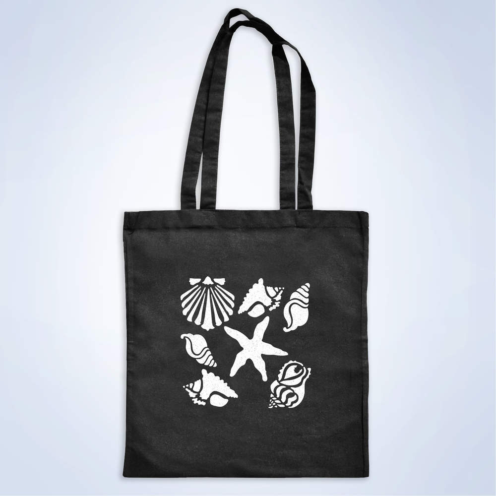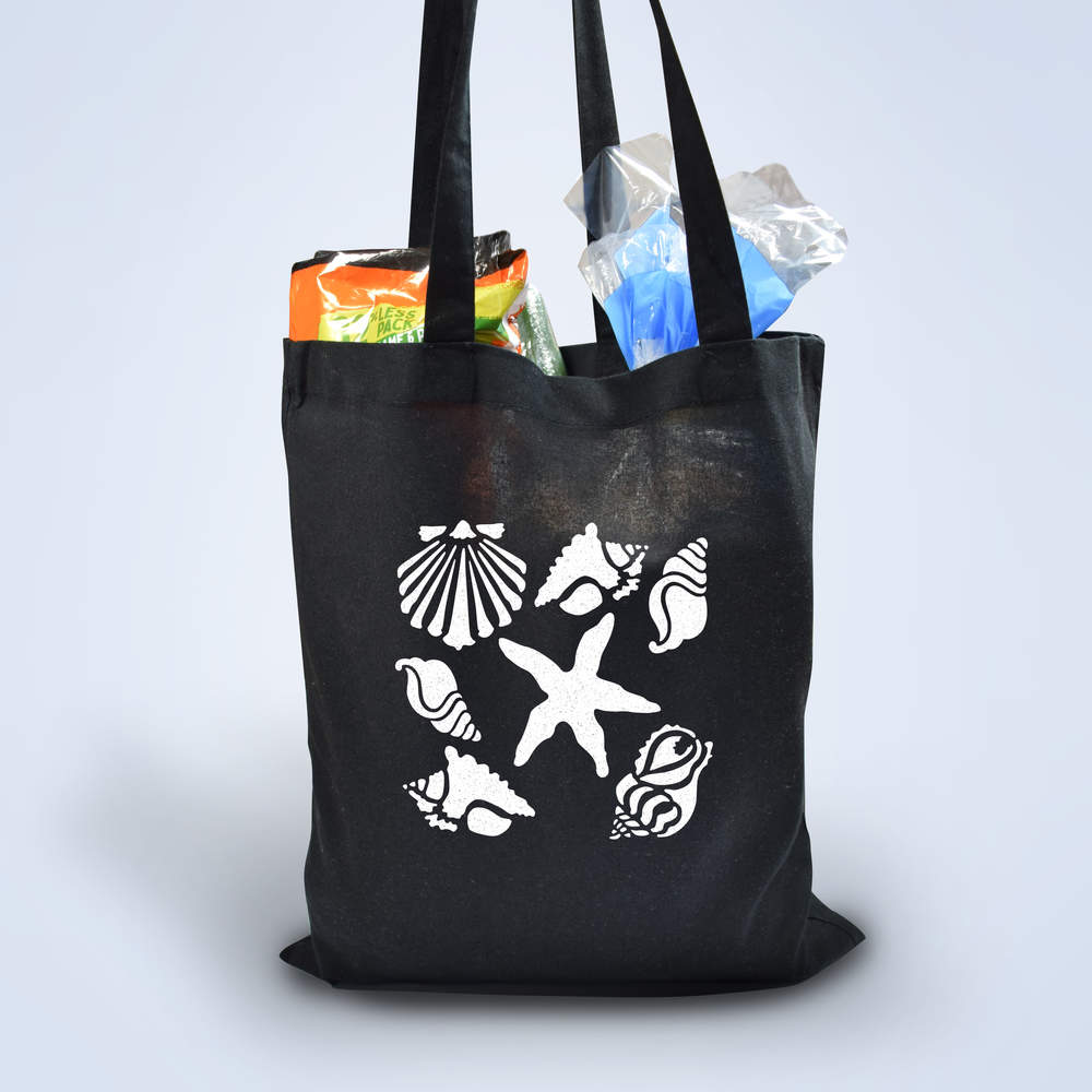 'Sea Shells & Starfish' Classic Black Tote Shopper Bag (ZB00022898)