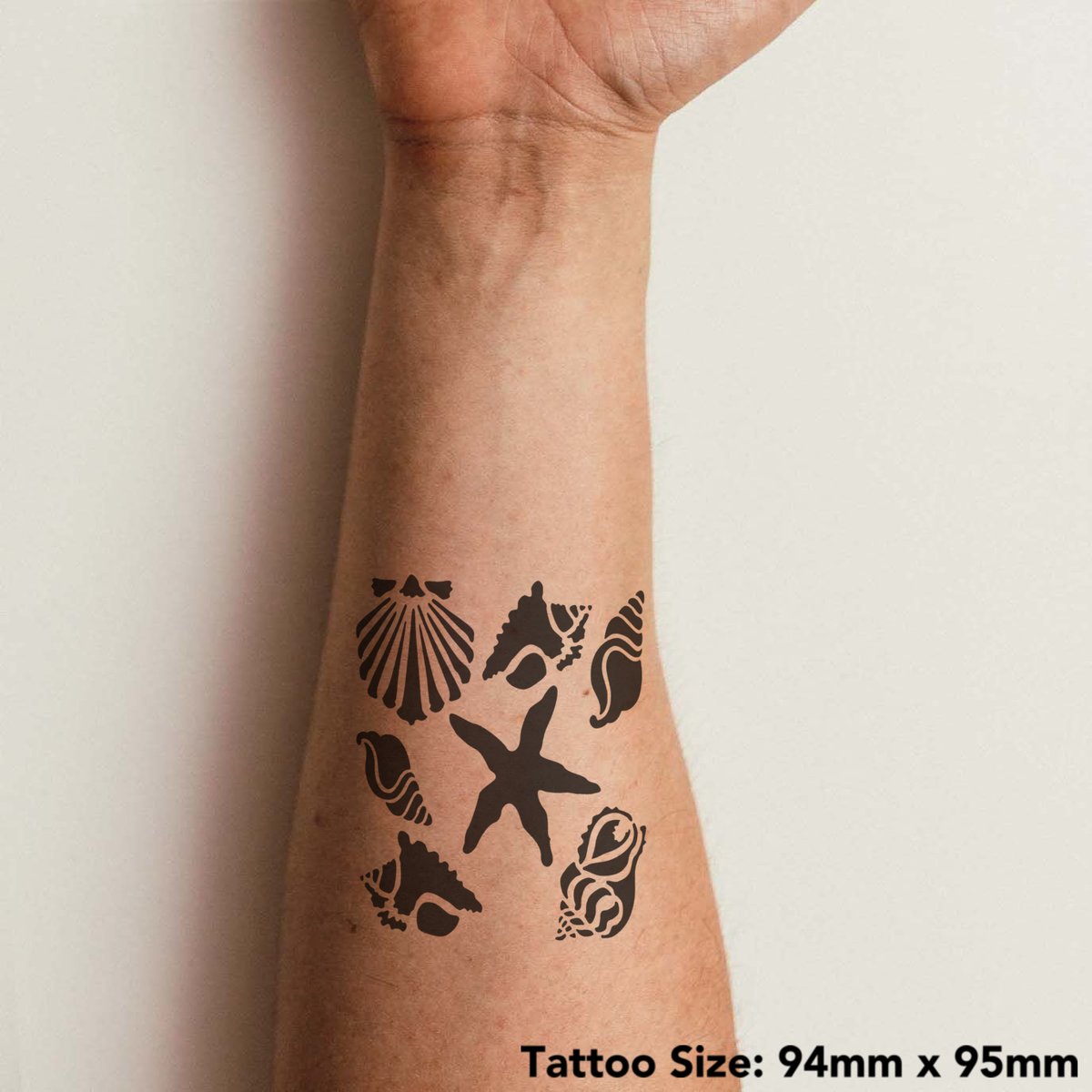 'Sea Shells & Starfish' Temporary Tattoo - Water Resistant, Skin-Safe, Non-Toxic Transfer (TO00075887)