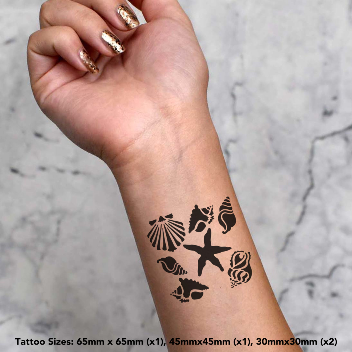 'Sea Shells & Starfish' Temporary Tattoos - Water Resistant, Skin-Safe, Non-Toxic Transfers (TO048660)