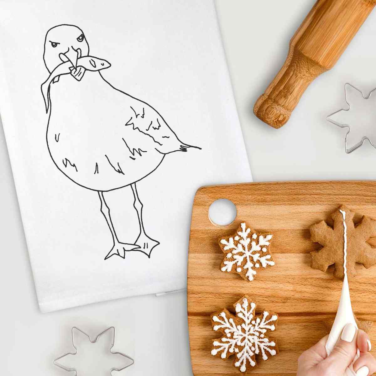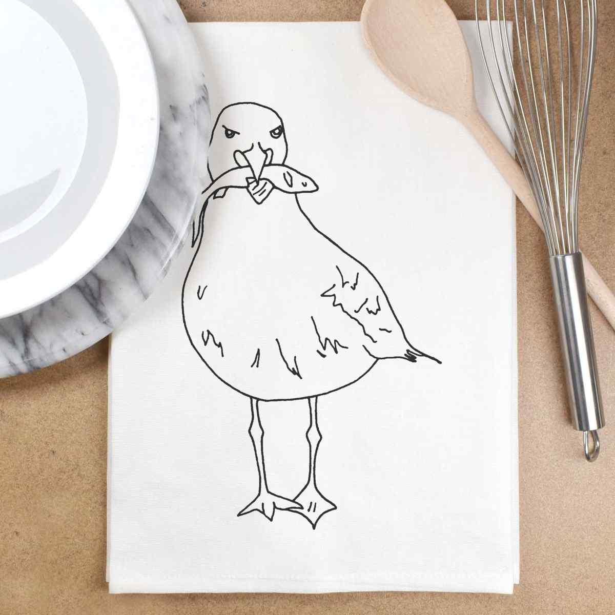 'Seagull With Fish' Cotton Tea Towel / Dish Cloth (TW024345)
