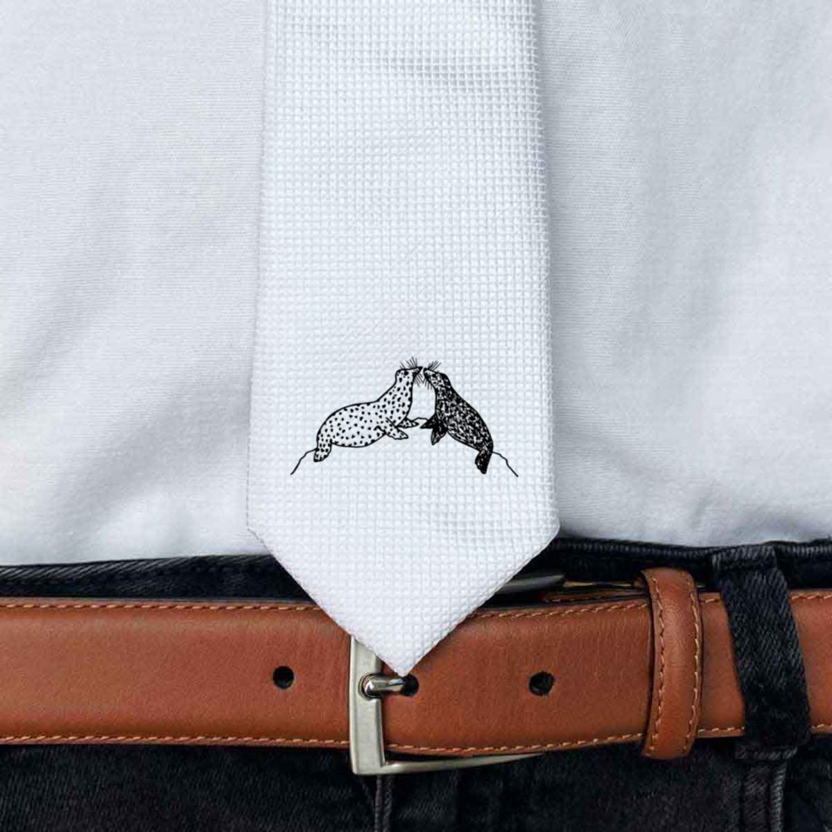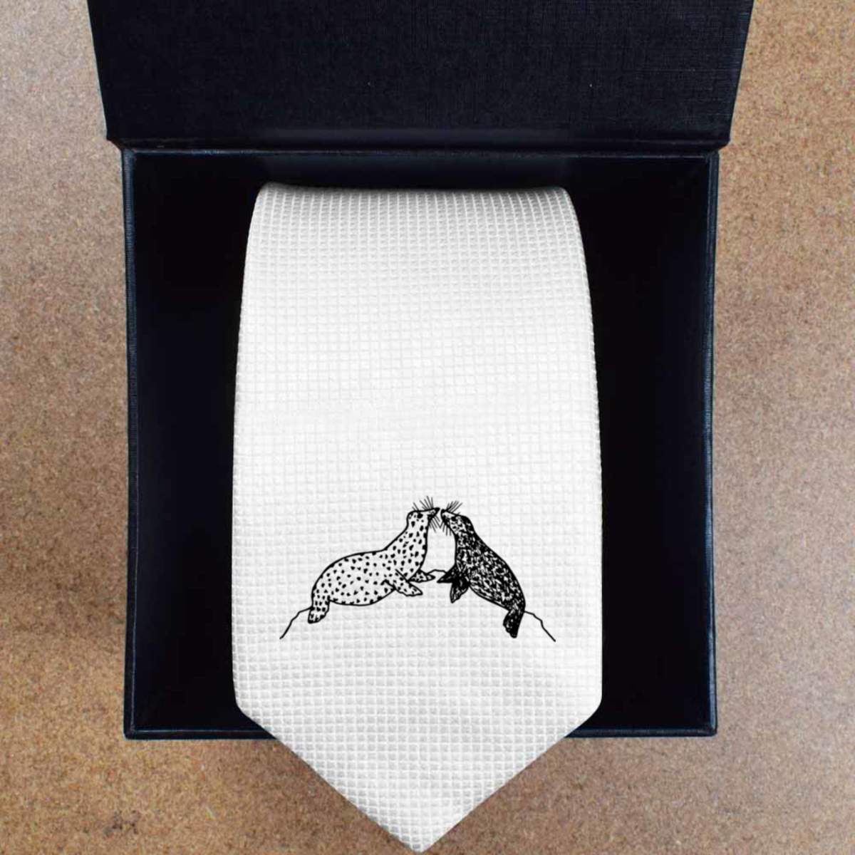 'Seals' White Tie / Necktie with Gift Box (AT00009525)