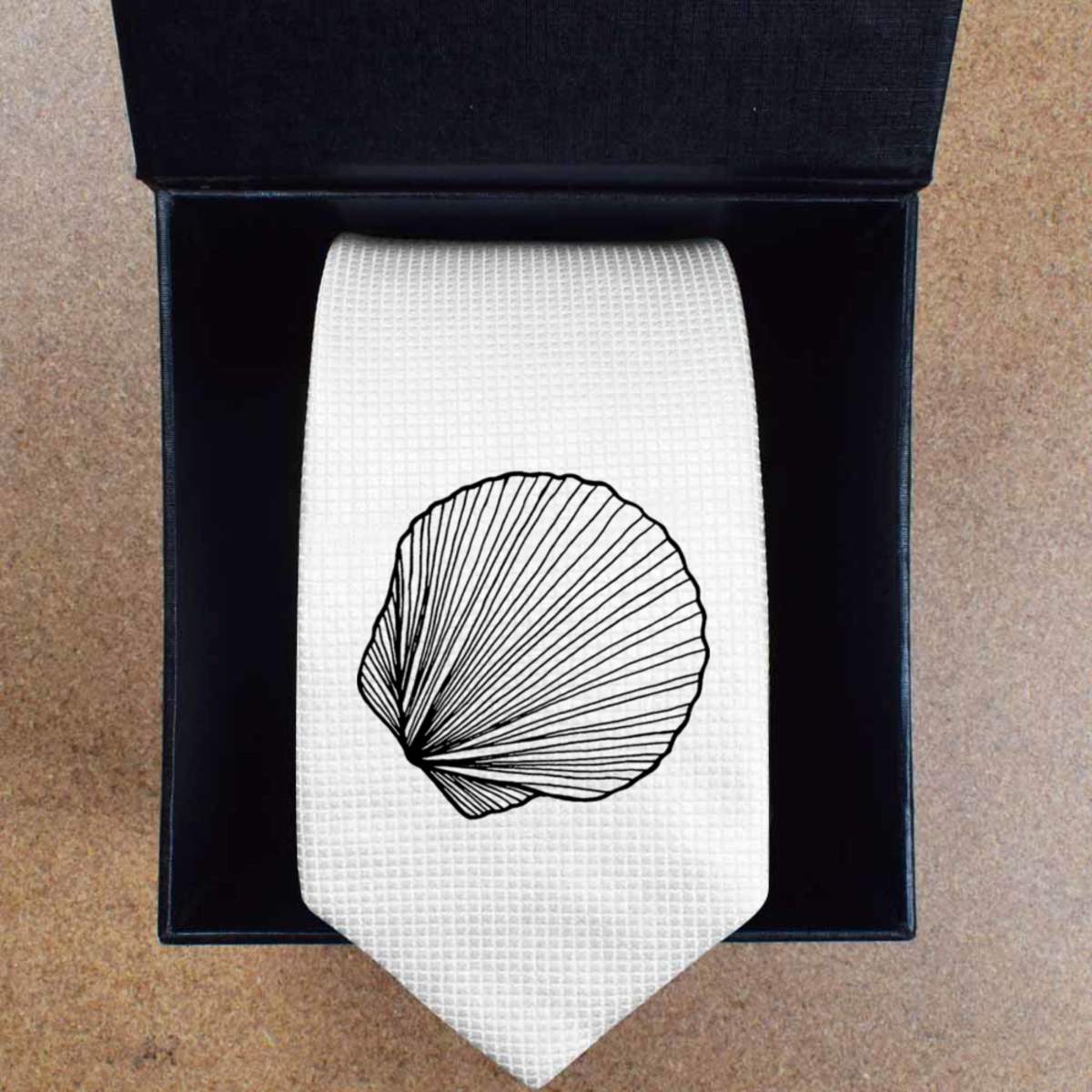 'Seashell' White Tie / Necktie with Gift Box (AT00000310)