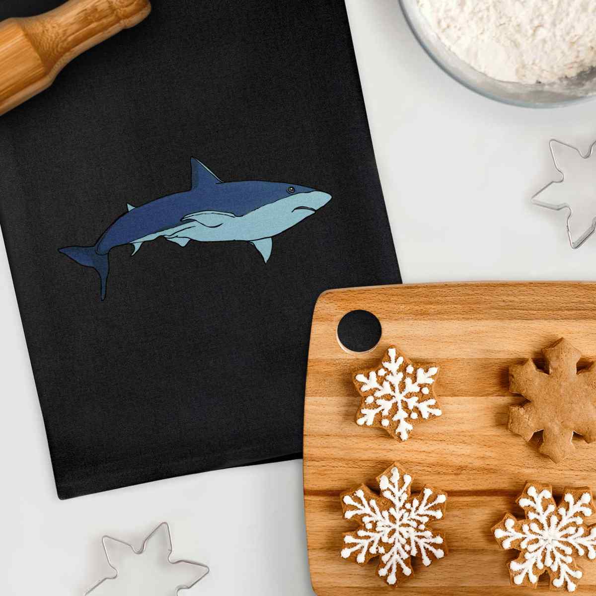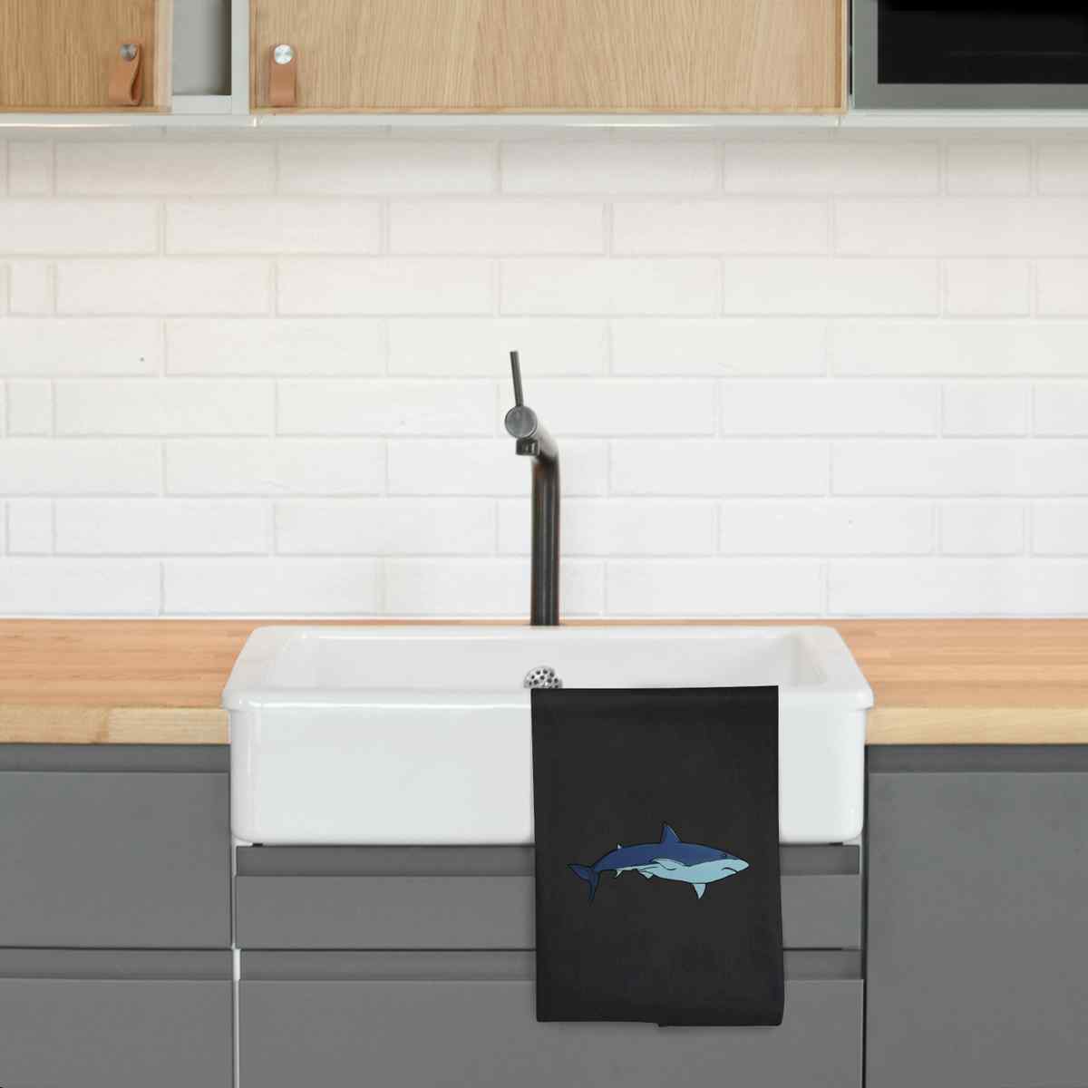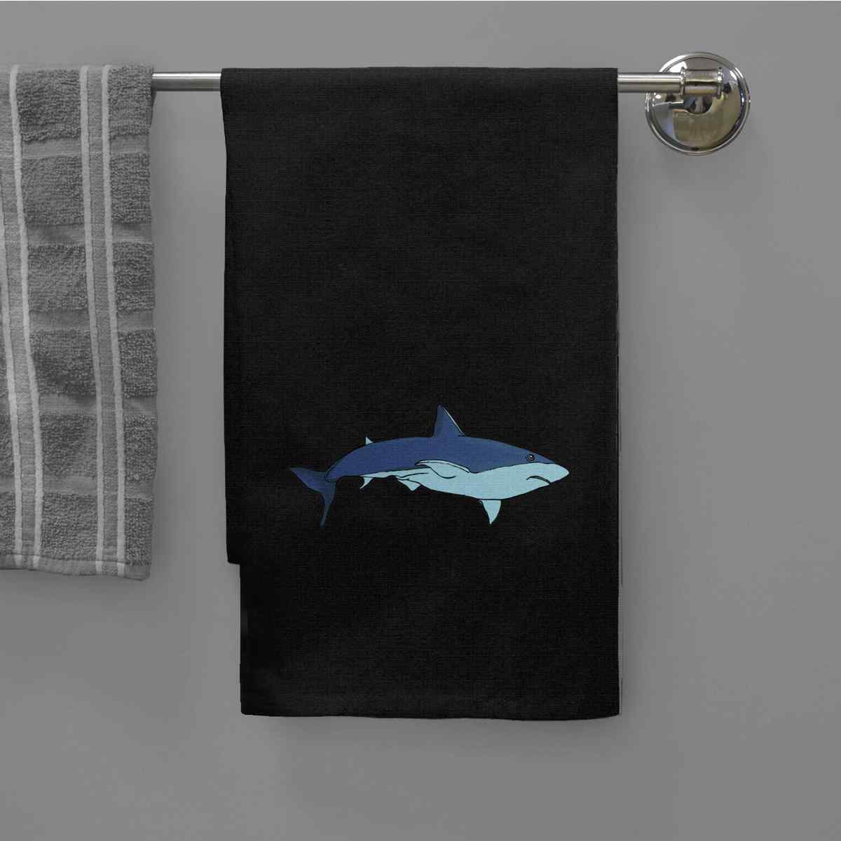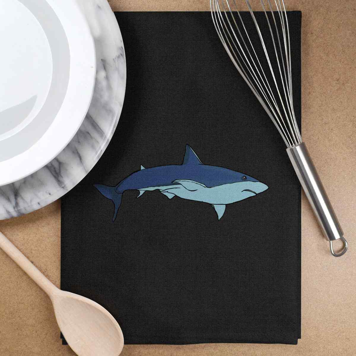'Shark' Black Cotton Tea Towel / Dish Cloth (TW00043367)