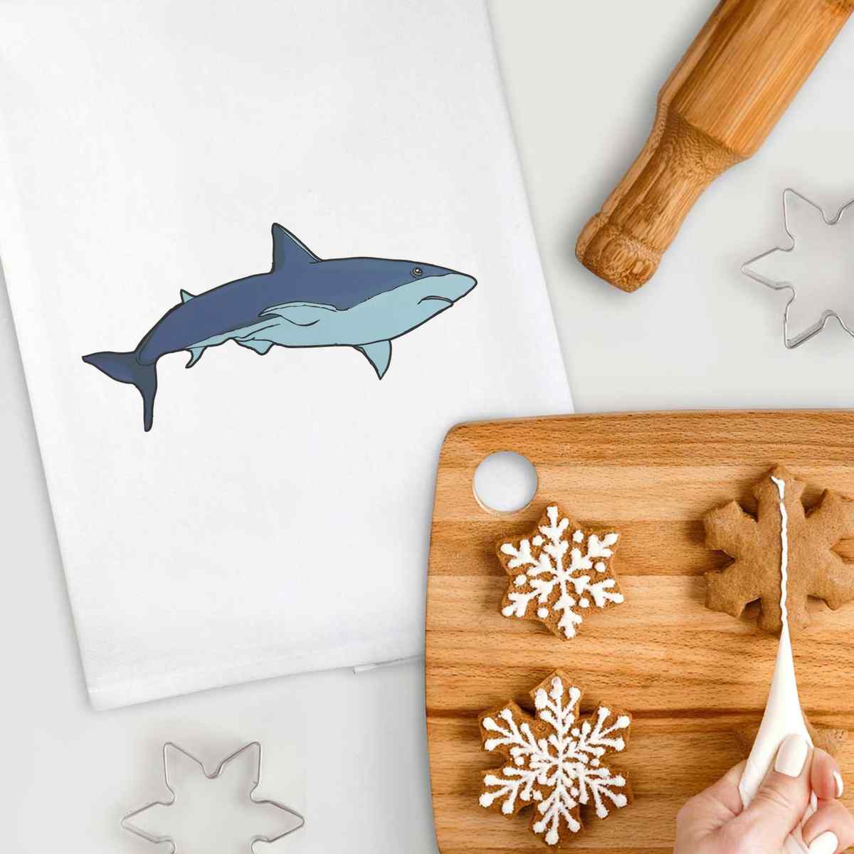 'Shark' Cotton Tea Towel / Dish Cloth (TW020616)