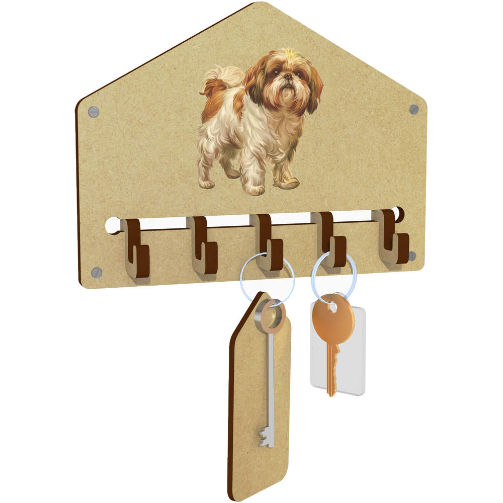 'Shih Tzu Dog Standing' Wall Mounted Key Hooks / Holder (WH00093790)