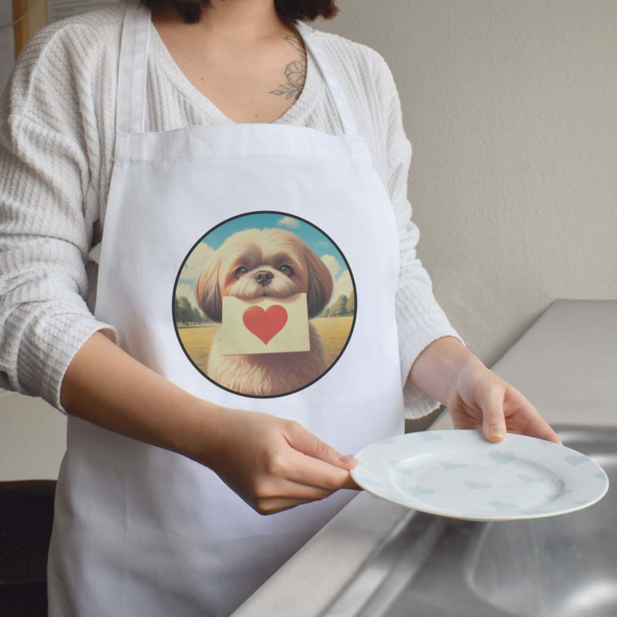 'Shih Tzu Love Note' Unisex Cooking Apron (AP00078848)
