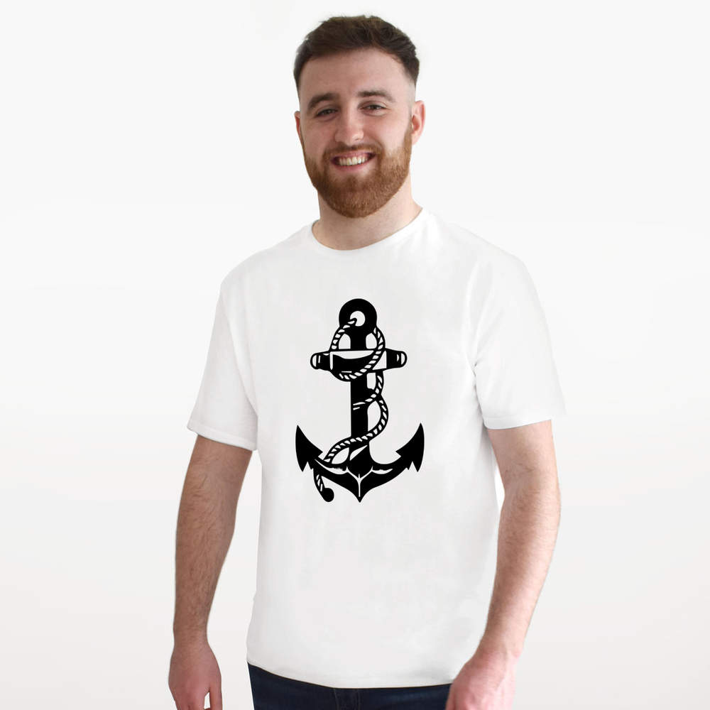 'Ship Anchor & Rope' Unisex T-Shirt - 100 % Cotton, White, S (TA00307848)
