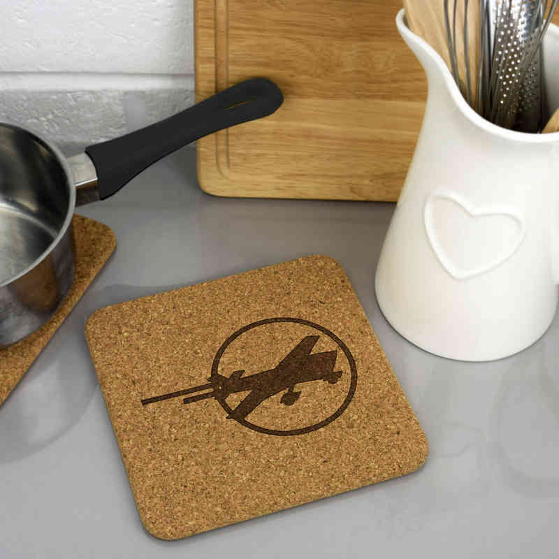 This wonderful square cork trivet / mat is a great addition to any kitchen. The cork is naturally non-slip and resistant to heat making it the perfect material to protect your kitchen worktops. Engraved on one side with a unique design, this product would make a fantastic gift and homeware essential.