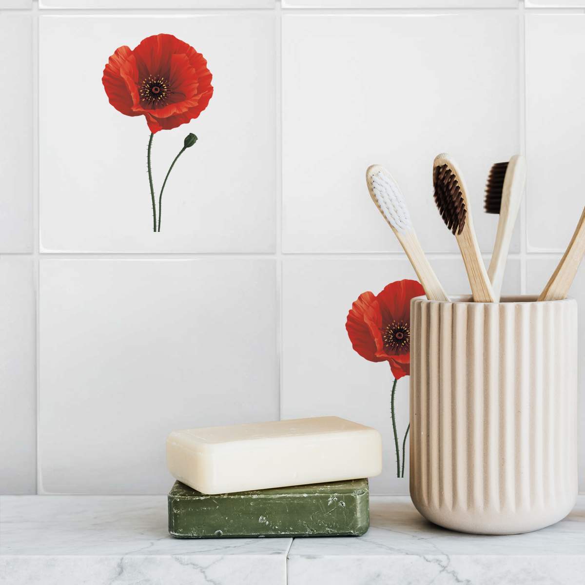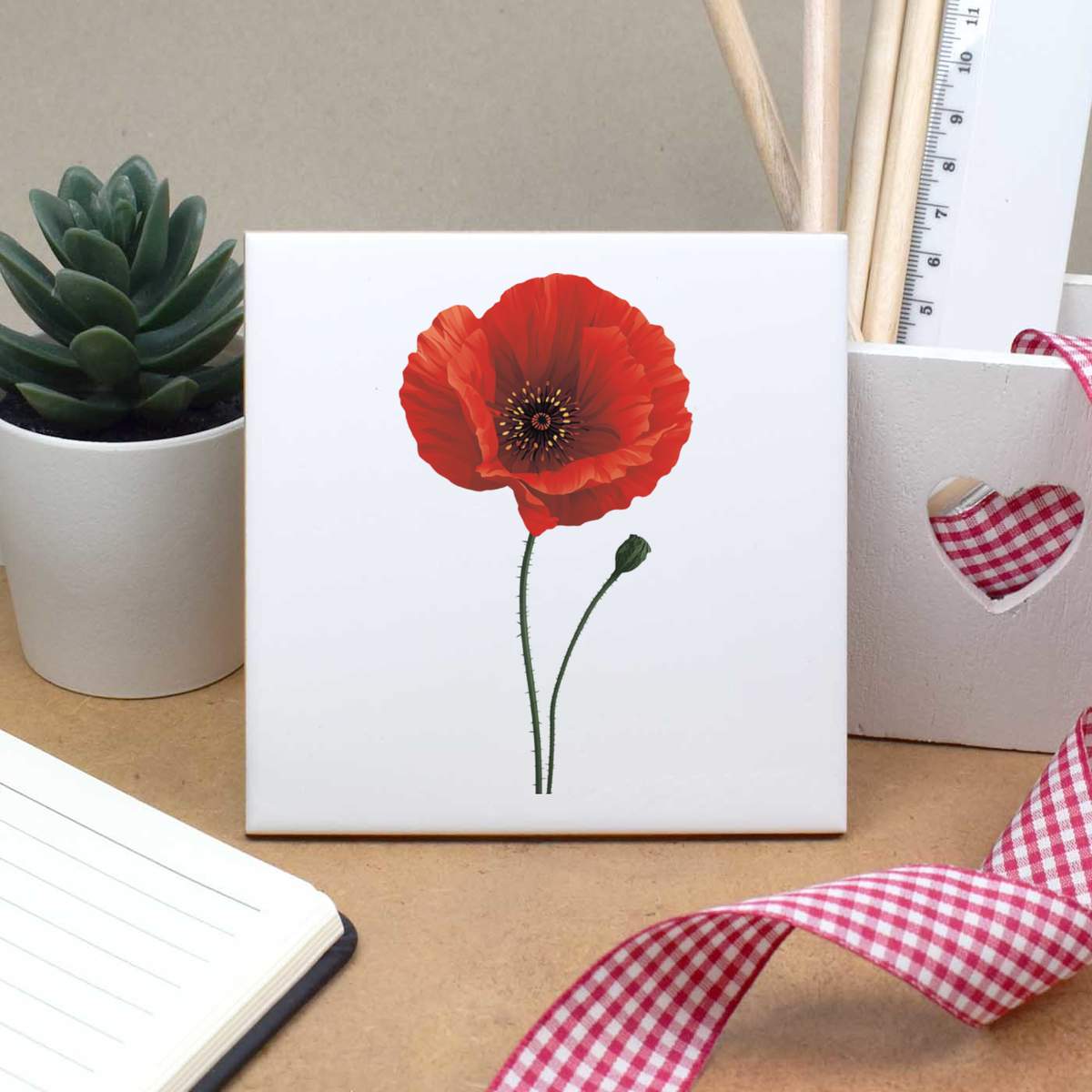 'Simple Poppy Flower' 108mm Square Ceramic Tile (TD00035772)