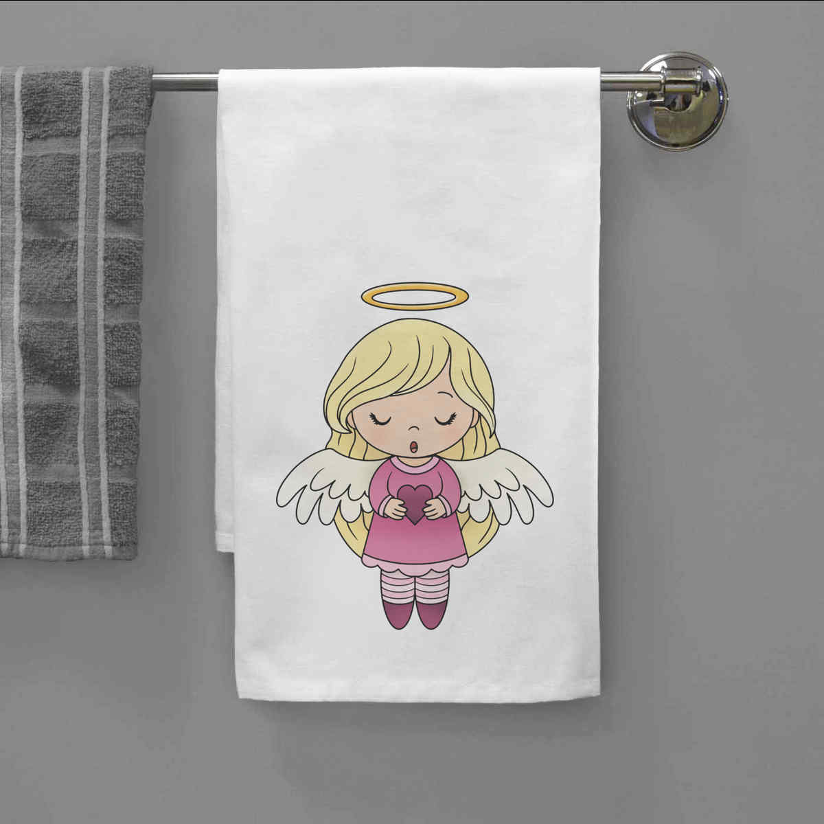 - White cotton tea towel with hanging loop