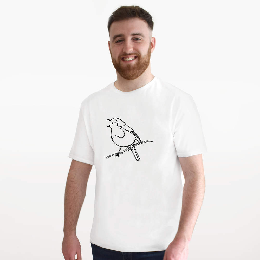 'Singing Robin' Unisex T-Shirt - 100 % Cotton, White, L (TA00053463)