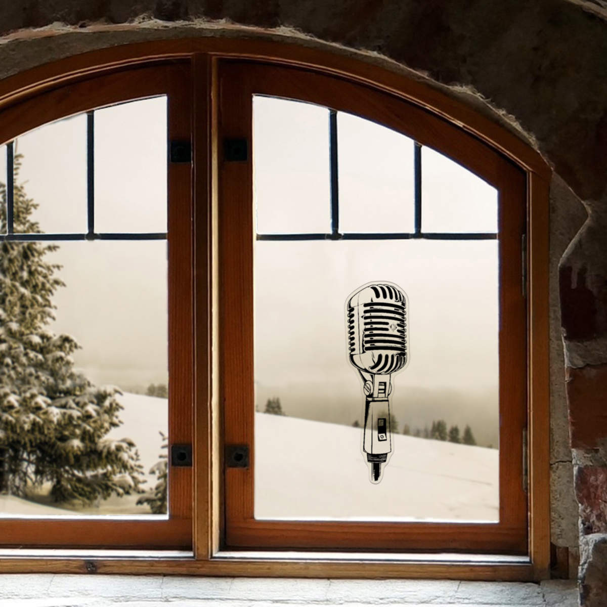 'Single Microphone ' Clear Premium Vinyl Decal Stickers – Waterproof, Durable & Easy to Apply - For Car Bumpers, Windows, Bins & More - Large (210mm) (DC00141586)