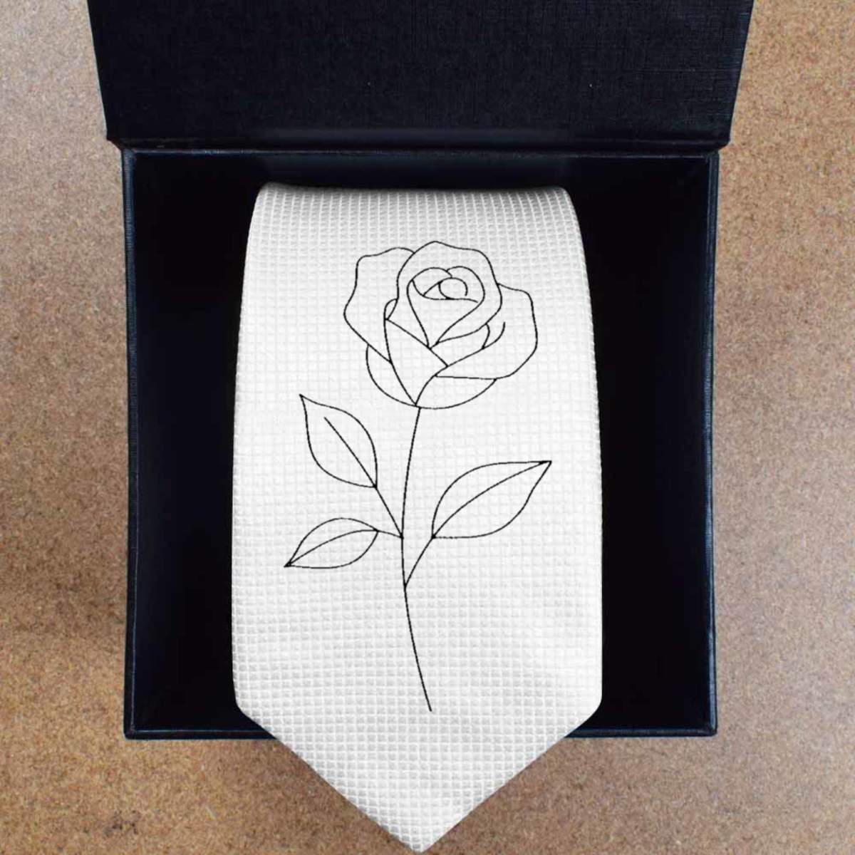 This stylish slim white tie is guaranteed to add class to any outfit. Printed on the front with a design from one of our talented designers, these ties are perfect for formal events, special occasions or making a statement at the office.