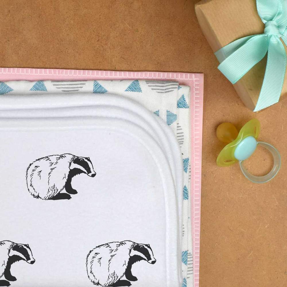 'Sitting Badger' Baby Burp / Wash Cloth (BC00003961)