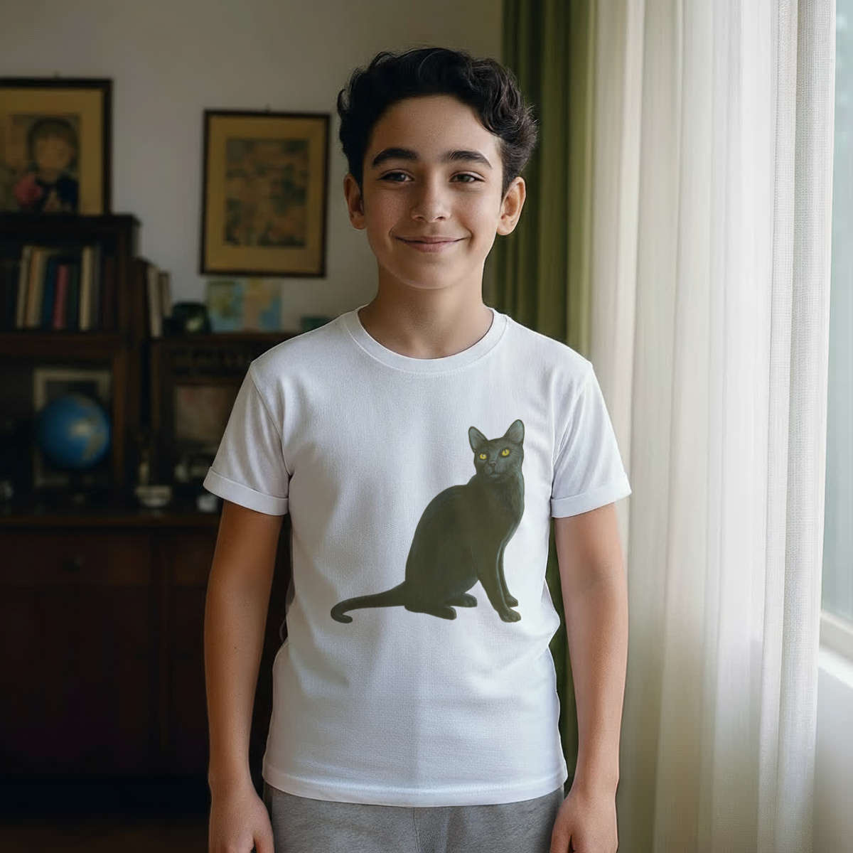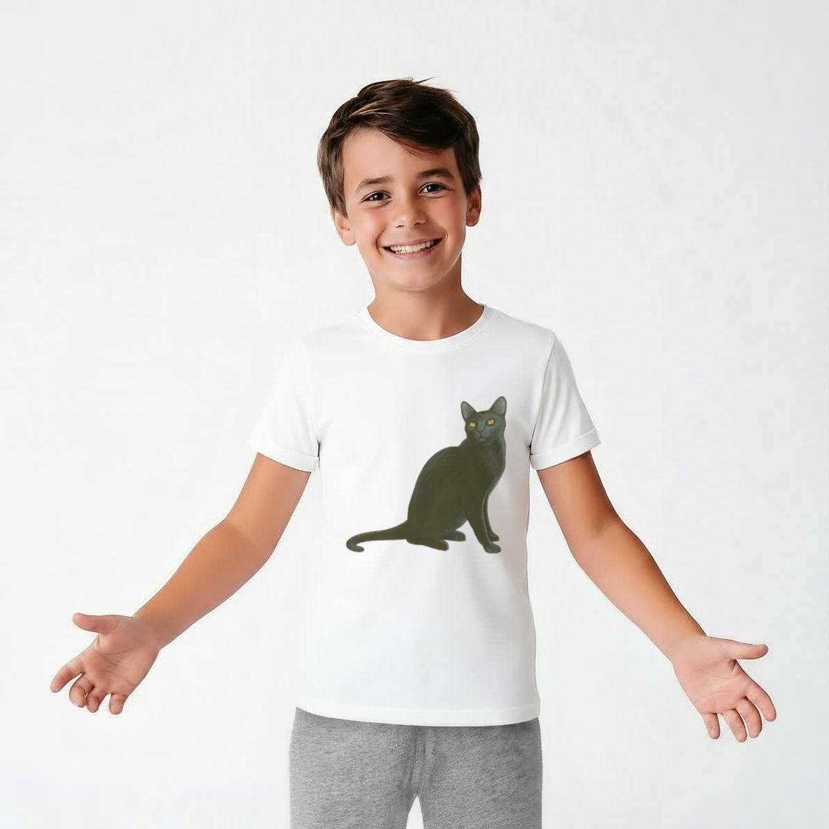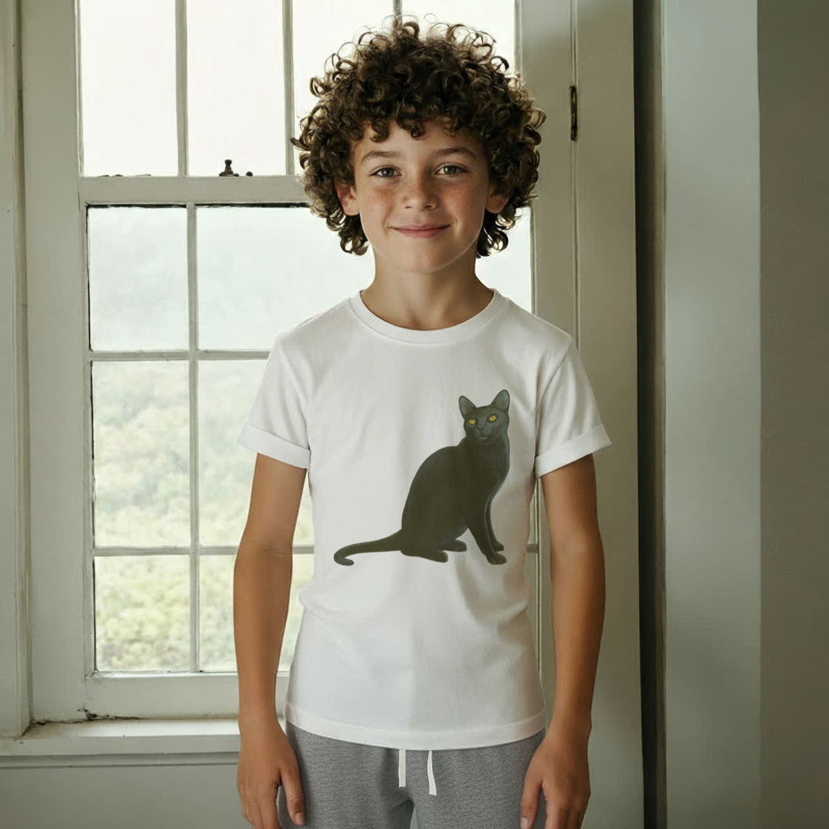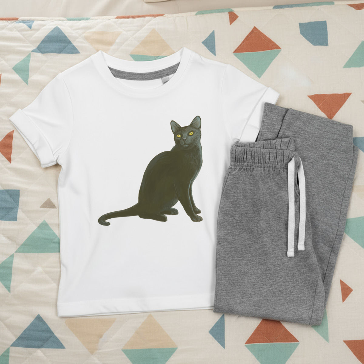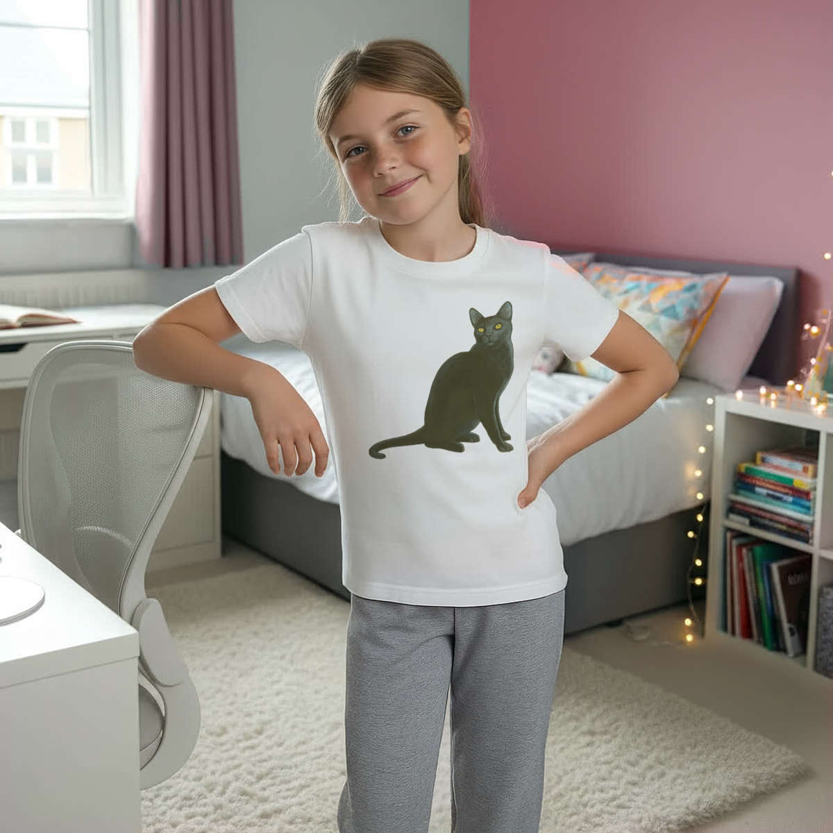 'Sitting Black Cat' Kids Cotton Pyjama Set – Comfortable Children's Nightwear, Sleepwear and Loungewear - Unisex for Boys and Girls - Grey, 11-13 Years (KP00093044)