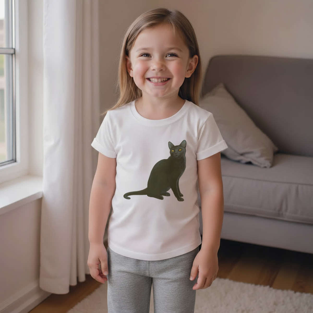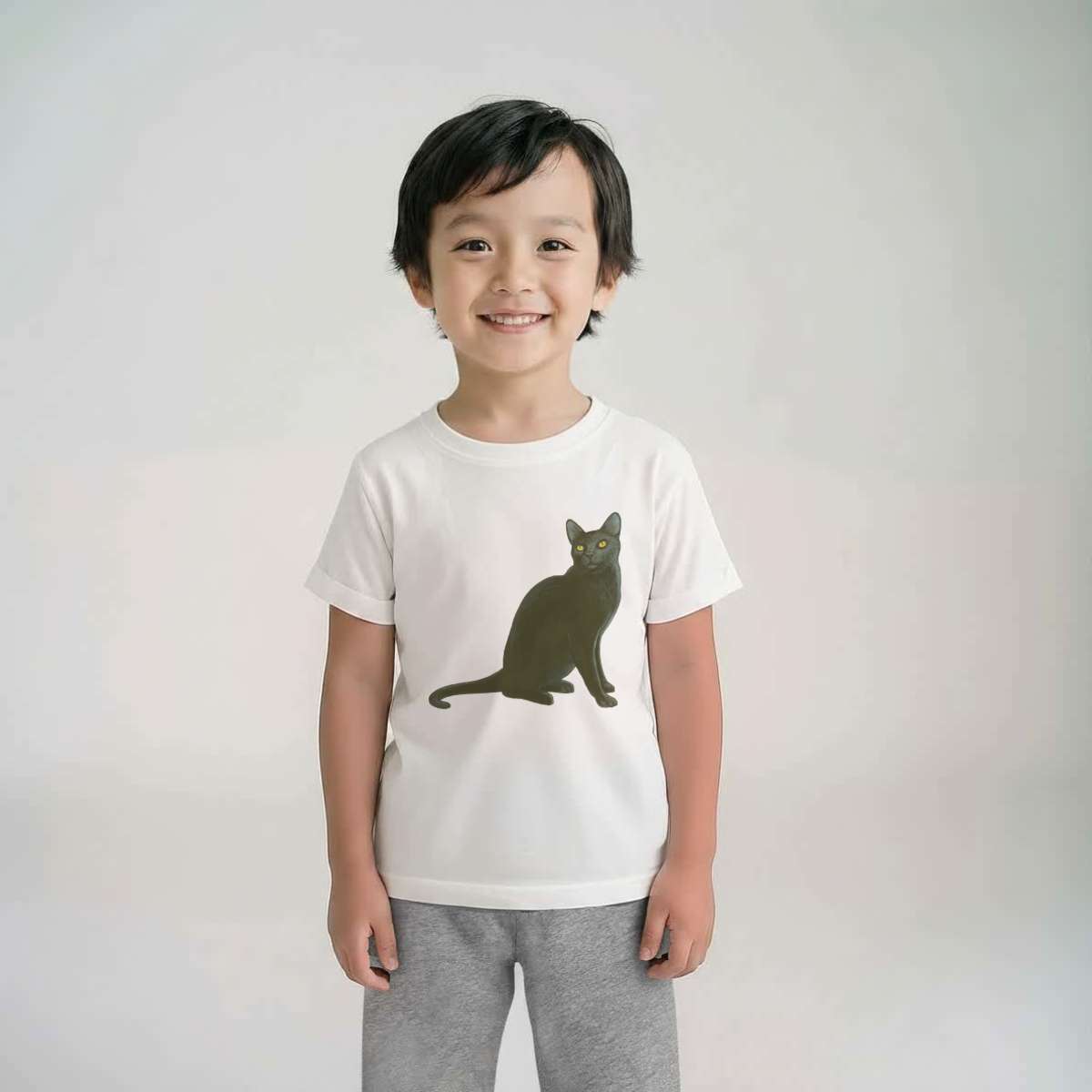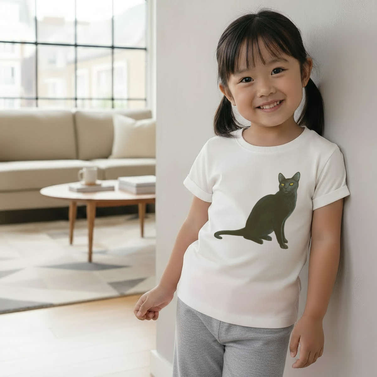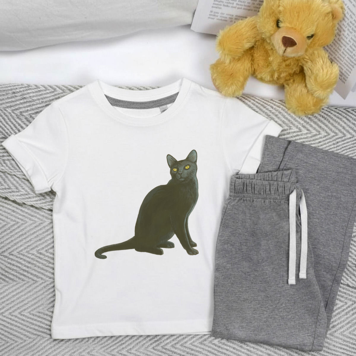 'Sitting Black Cat' Kids Cotton Pyjama Set – Comfortable Children's Nightwear, Sleepwear and Loungewear - Unisex for Boys and Girls – Grey (KP020847)
