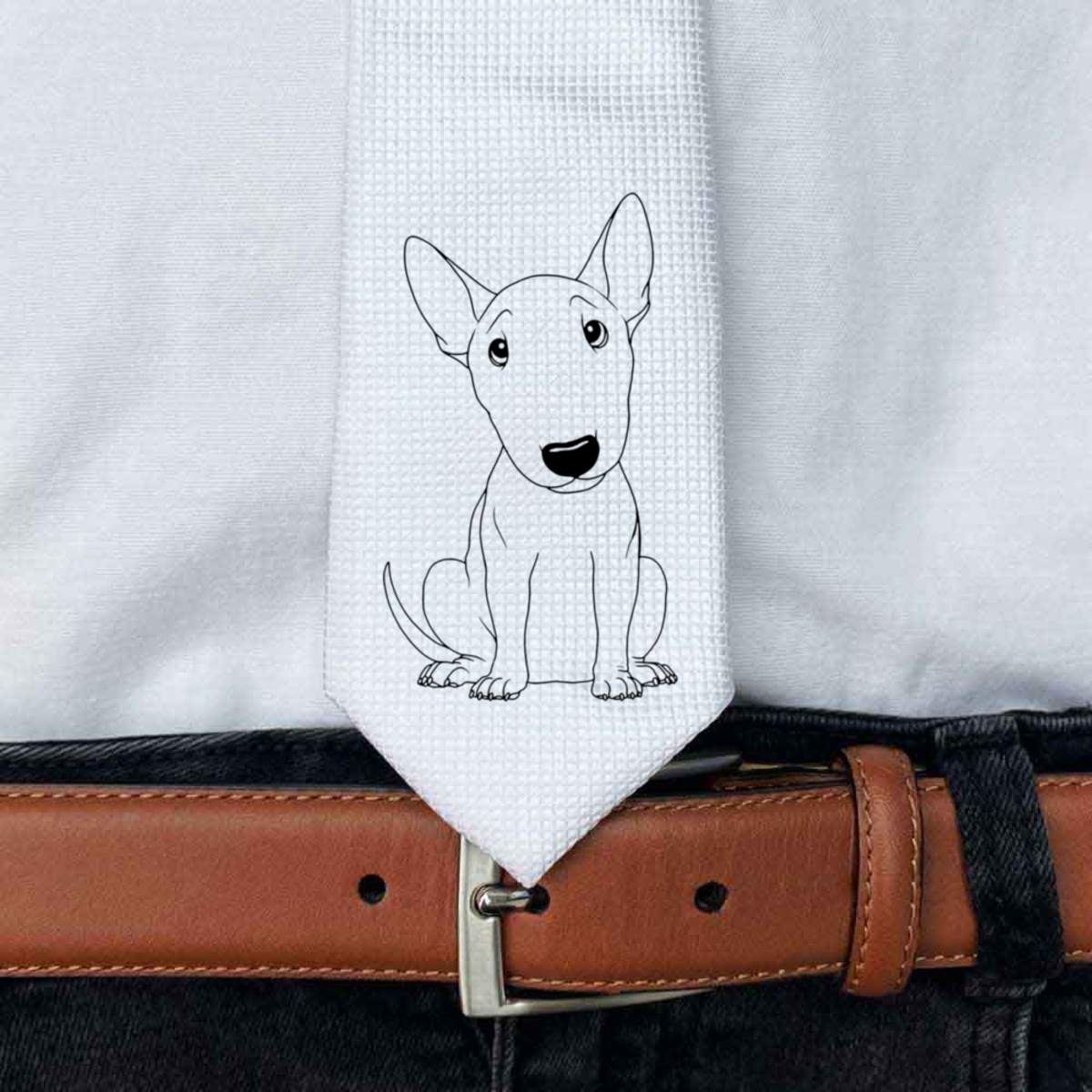 This stylish slim white tie is guaranteed to add class to any outfit. Printed on the front with a design from one of our talented designers, these ties are perfect for formal events, special occasions or making a statement at the office.