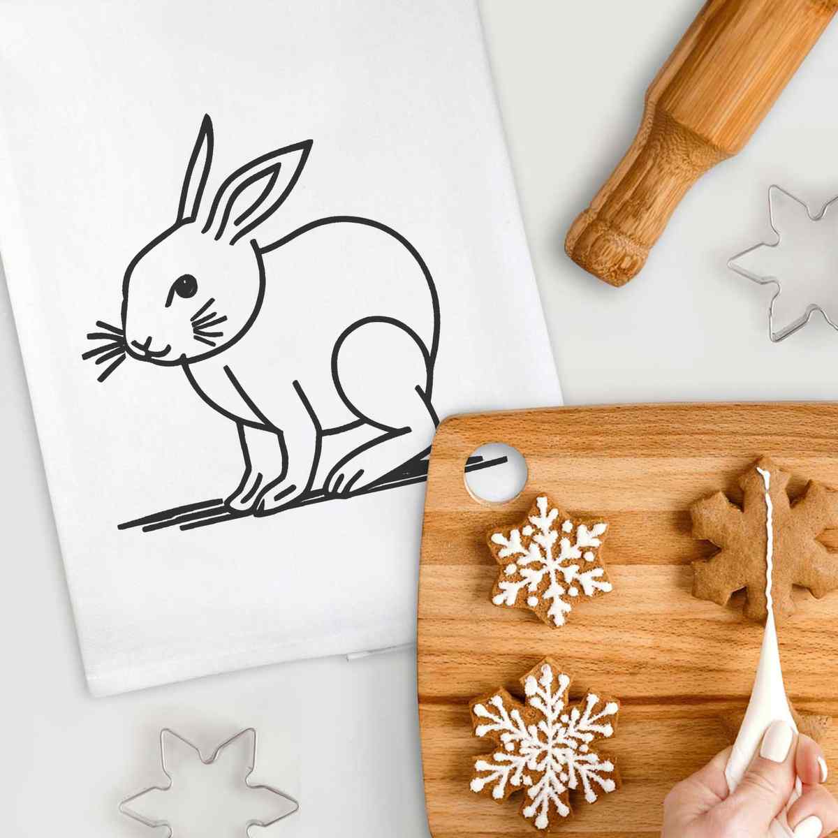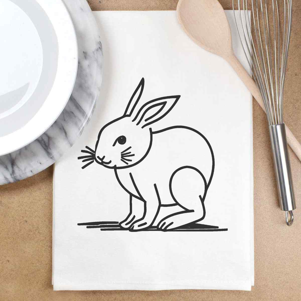 'Sitting Bunny Rabbit' Cotton Tea Towel / Dish Cloth (TW043938)