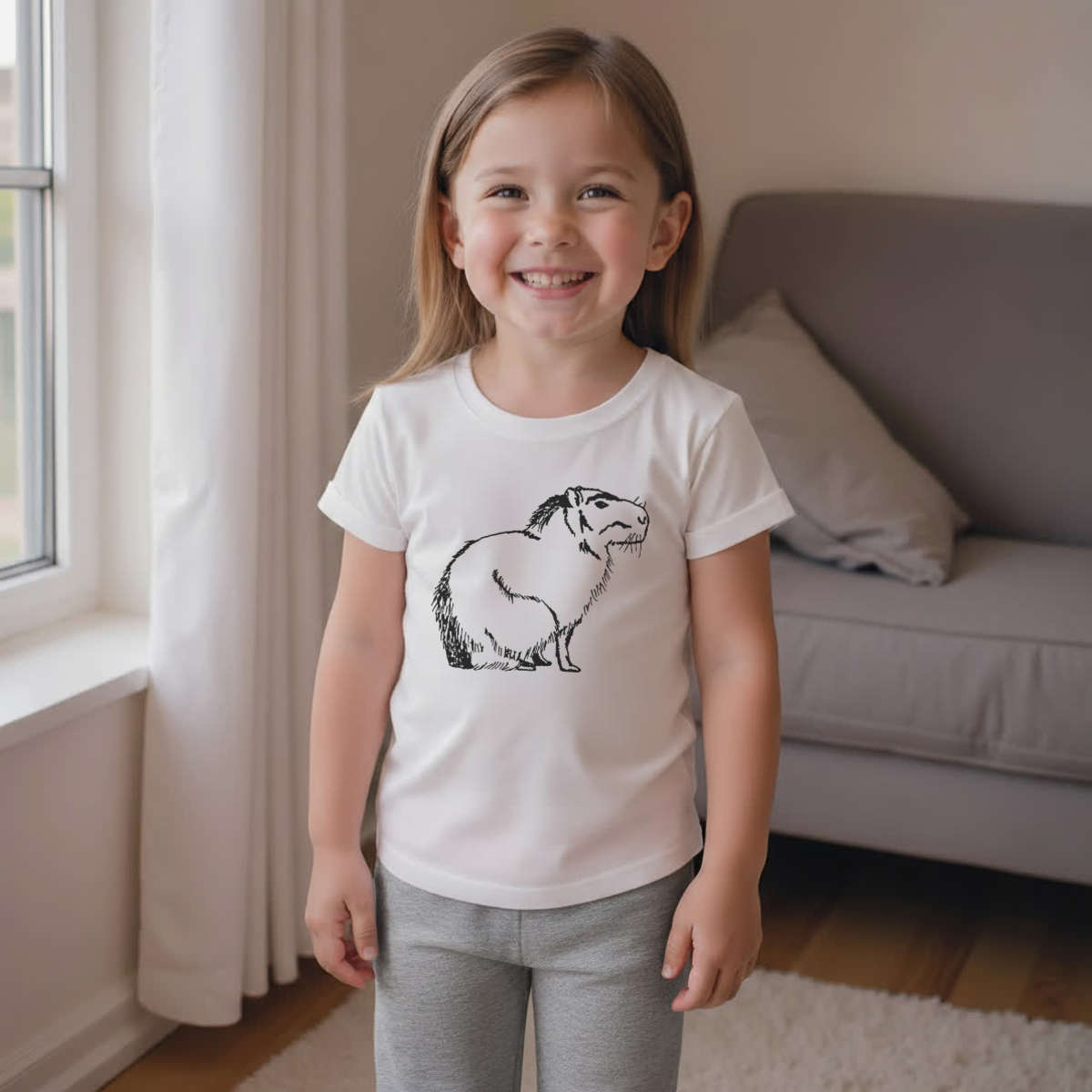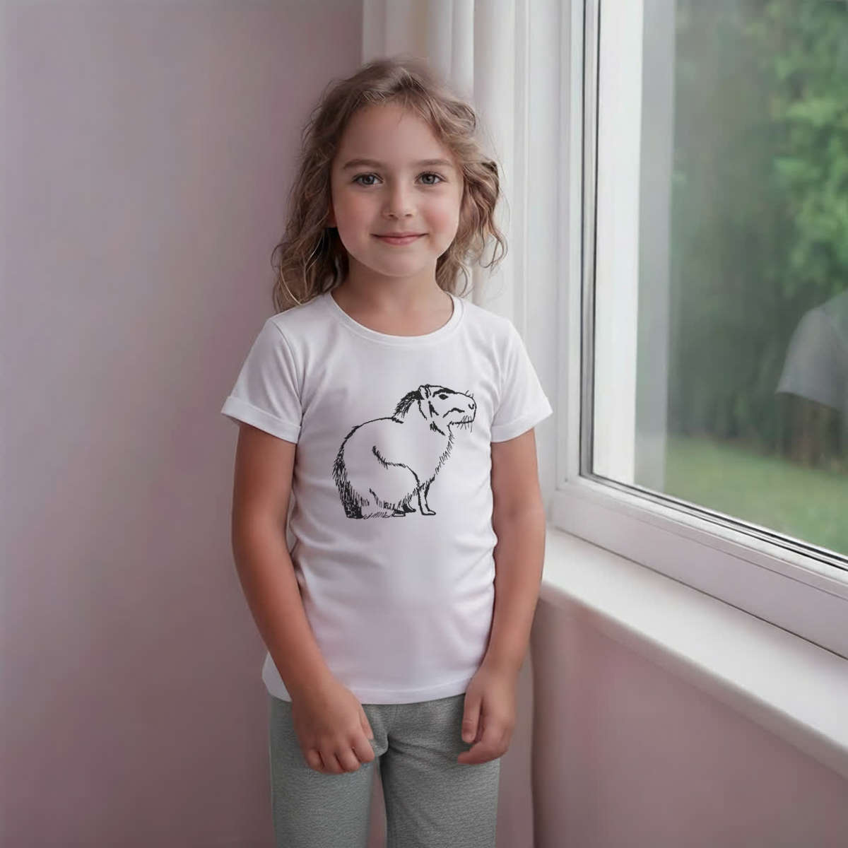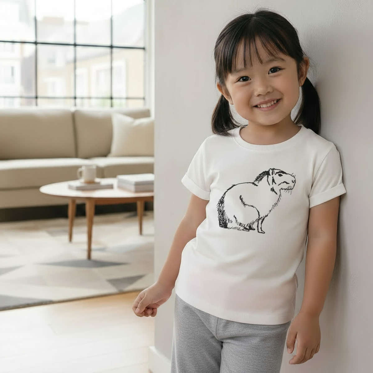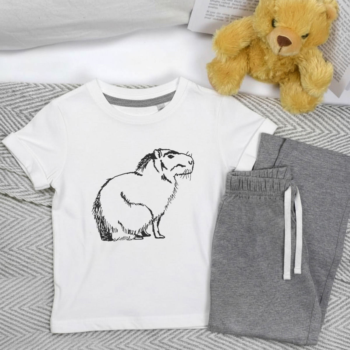 'Sitting Capybara' Kids Cotton Pyjama Set – Comfortable Children's Nightwear, Sleepwear and Loungewear - Unisex for Boys and Girls – Grey (KP019989)