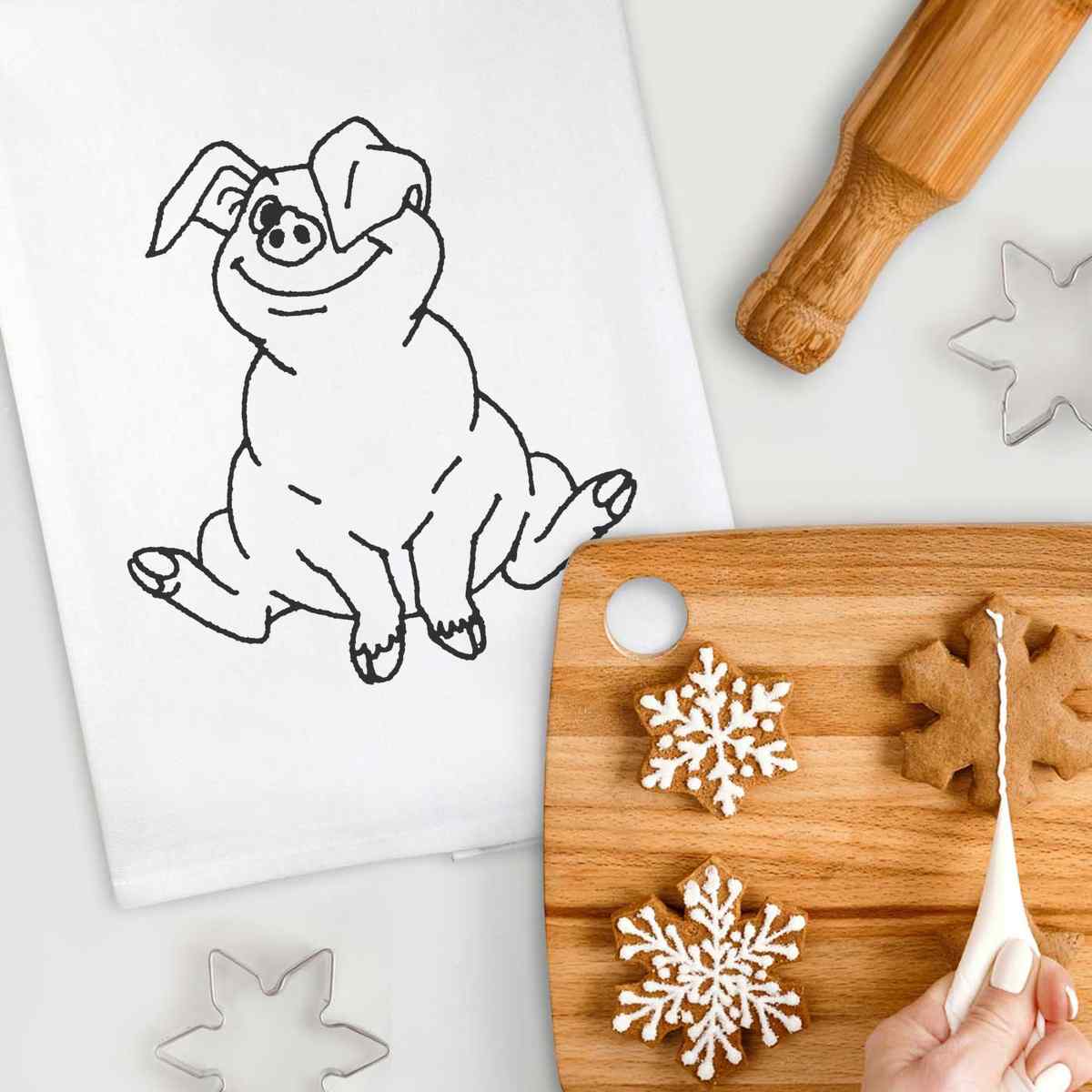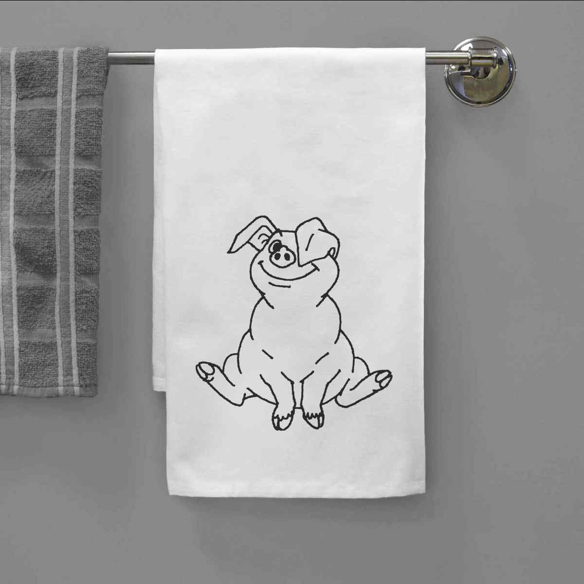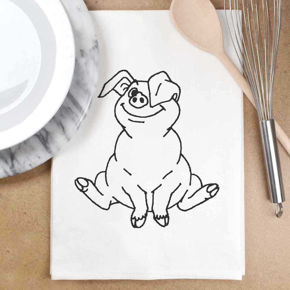 'Sitting Pig' Cotton Tea Towel / Dish Cloth (TW010126)