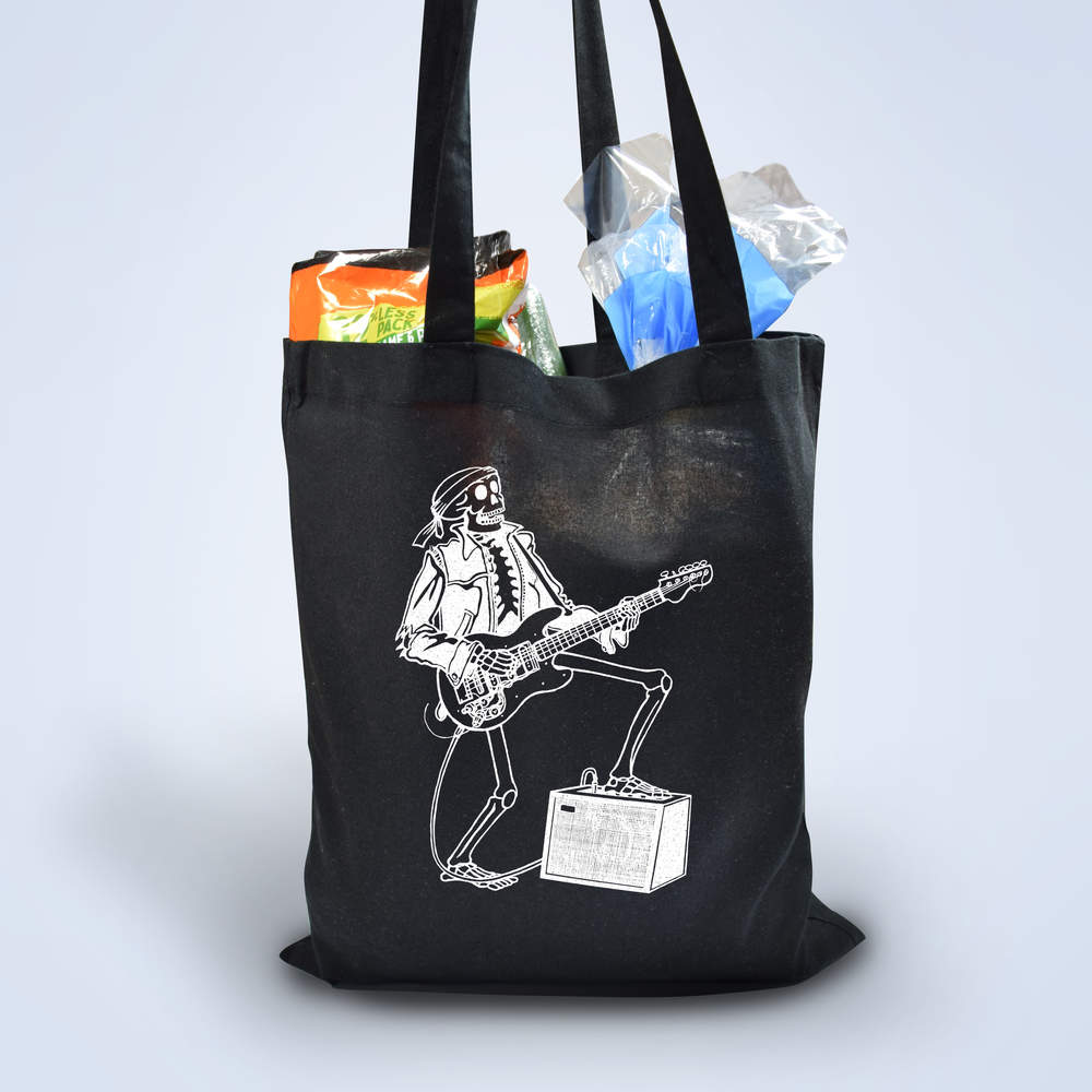 'Skeleton Playing Guitar' Classic Black Tote Shopper Bag (ZB00010017)