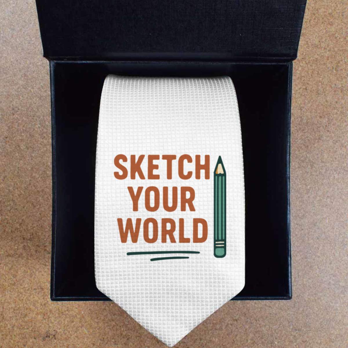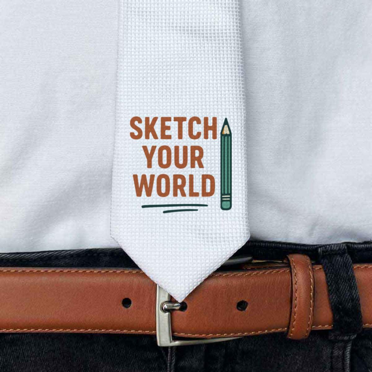This stylish slim white tie is guaranteed to add class to any outfit. Printed on the front with a design from one of our talented designers, these ties are perfect for formal events, special occasions or making a statement at the office.