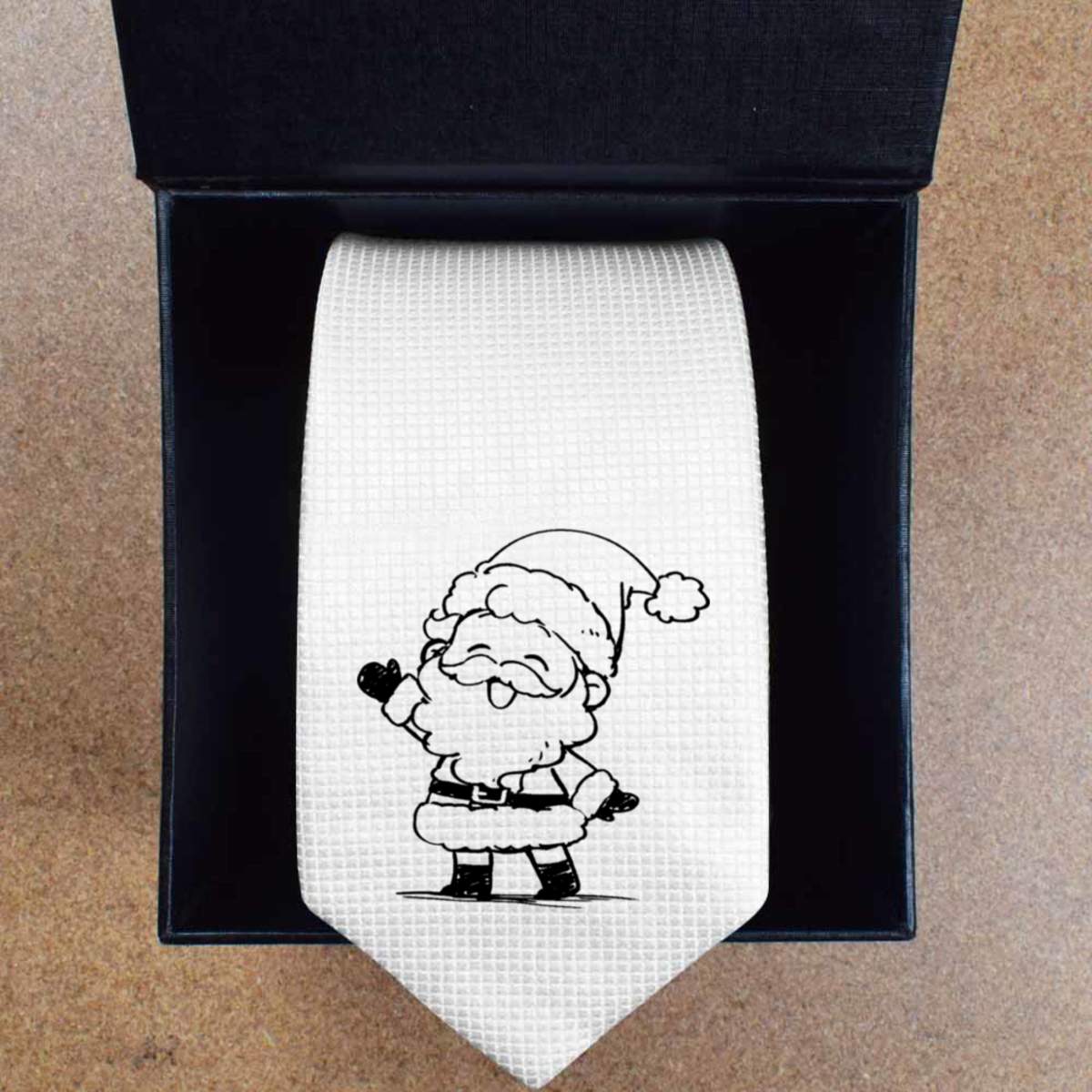 This stylish slim white tie is guaranteed to add class to any outfit. Printed on the front with a design from one of our talented designers, these ties are perfect for formal events, special occasions or making a statement at the office.