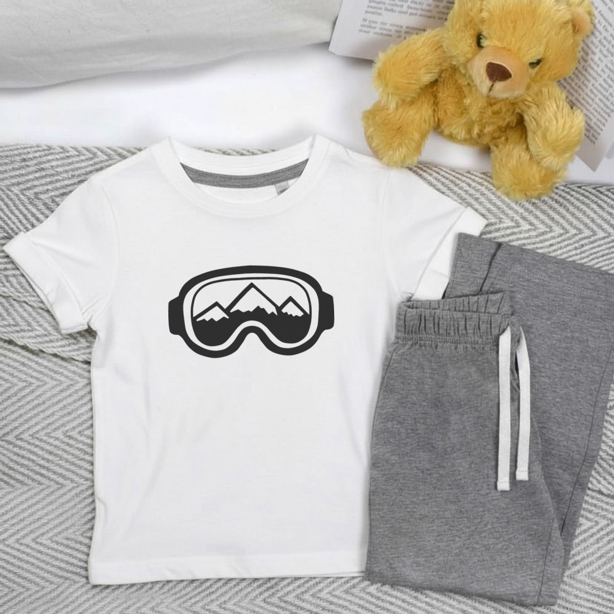 'Ski Goggles' Kids Cotton Pyjama Set – Comfortable Children's Nightwear, Sleepwear and Loungewear - Unisex for Boys and Girls - Grey, 7-8 Years (KP00014771)