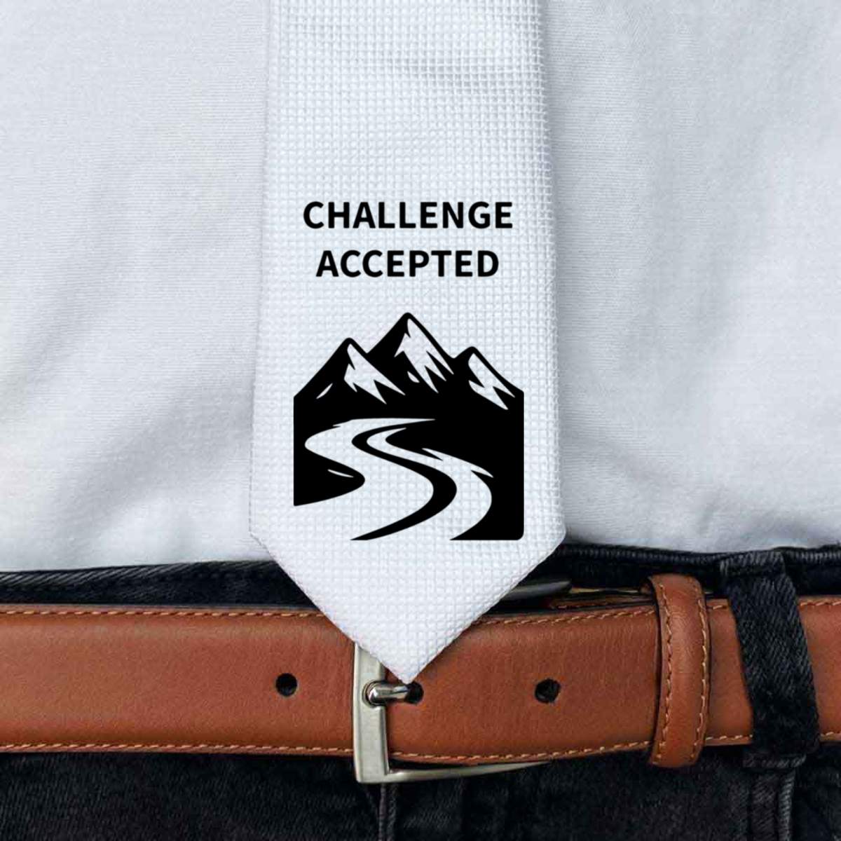 This stylish slim white tie is guaranteed to add class to any outfit. Printed on the front with a design from one of our talented designers, these ties are perfect for formal events, special occasions or making a statement at the office.