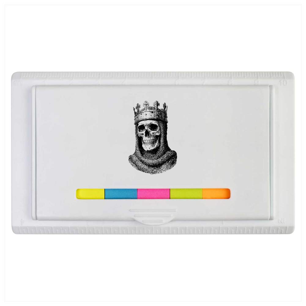 This sticky note ruler pad is a useful desktop accessory; the white plastic case has a flip top lid which reveals 7 colours of slim sticky note tabs. There are approximately 25 sticky notes in each colour, ideal for writing notes on and marking pages. Both edges of the plastic case are embossed with ruler markings; imperial on one side (0 - 4 inches) and metric on the other (0 - 10cm). Each case is printed on the flip top lid with a unique design, making it great gift for students and office workers.