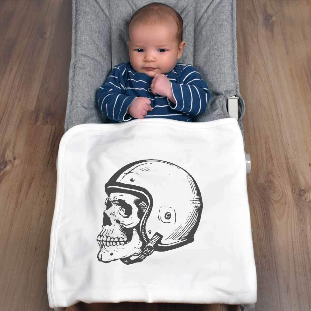 'Skull Wearing Motorbike Helmet' Cotton Baby Blanket / Shawl (BY00045144)