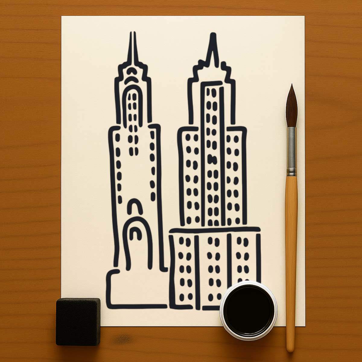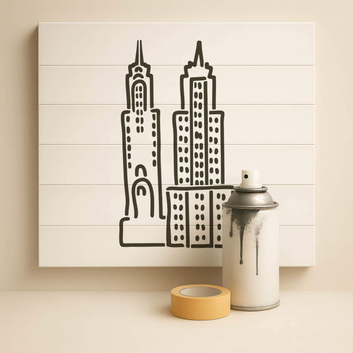 'Skyscraper Buildings' Reusable Stencil – Durable Decorative Template for Painting and Spraying on Walls, Tiles, Wood, Fabric & Craft Projects - M (A5) (WS00030072)
