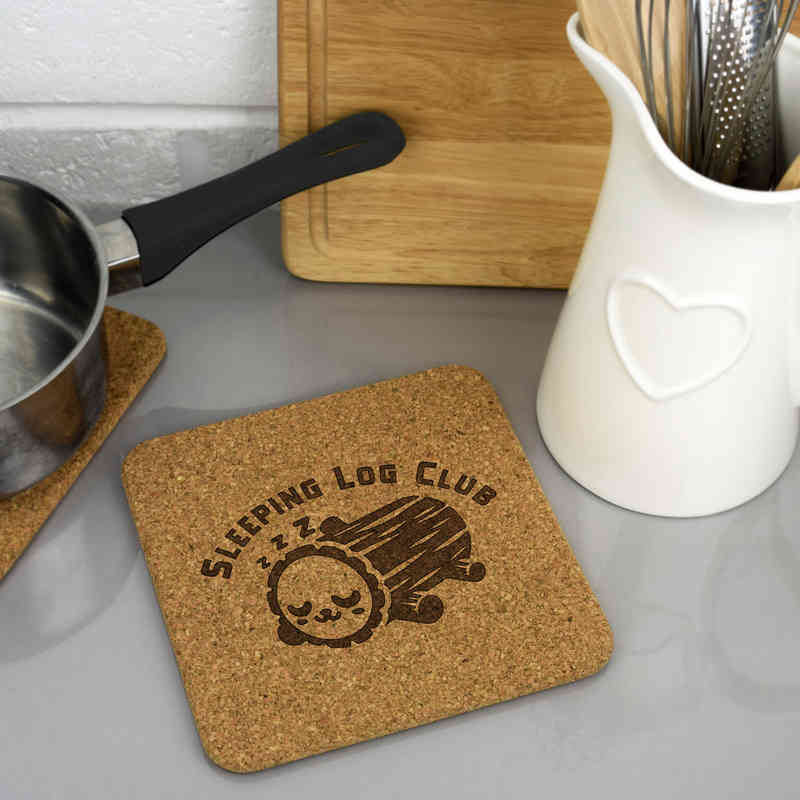 'Sleeping Log Club' Square Cork Trivet / Pot Stand (TR00031597)