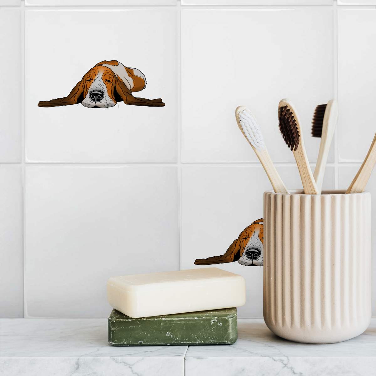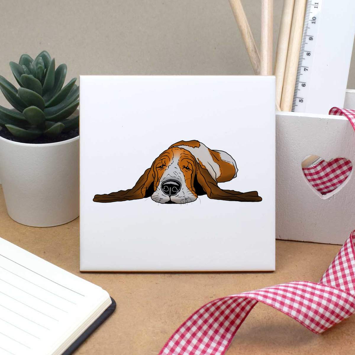 'Sleepy Basset Hound' 108mm Square Ceramic Tile (TD00011802)