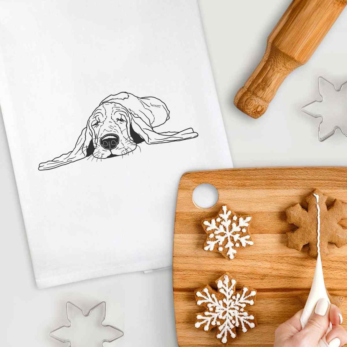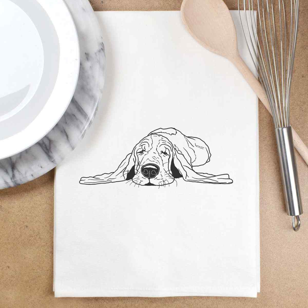 'Sleepy Basset Hound' Cotton Tea Towel / Dish Cloth (TW029460)
