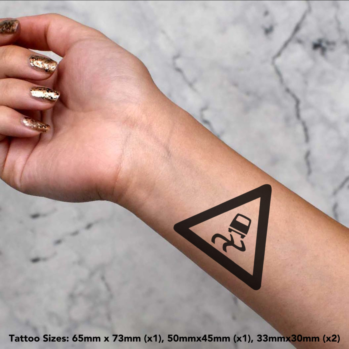 'Slippery Road Sign ' Temporary Tattoos - Water Resistant, Skin-Safe, Non-Toxic Transfers (TO054049)