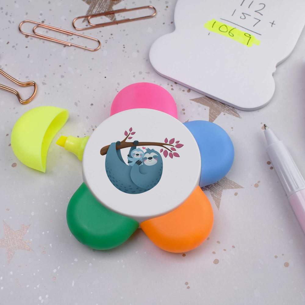 'Sloth Mother & Baby' Flower Shape Highlighter Pen (HL00011266)
