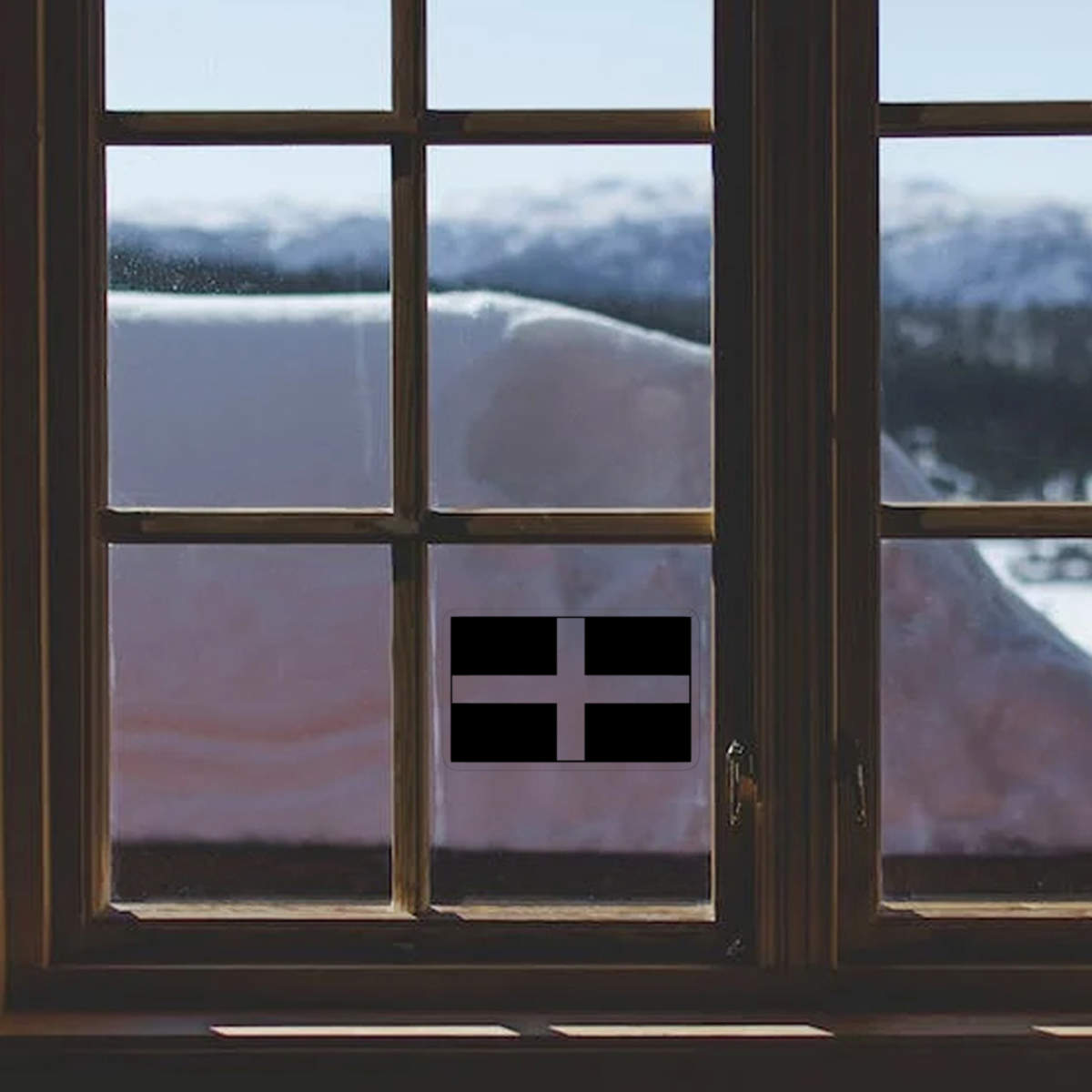 Small 100mm 'Flag Of Cornwall' Clear Static Window Cling Sticker / Decal (Black) (WC00067762)
