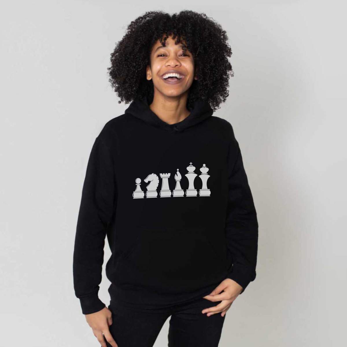 Small 'Chess Pieces' Adult Hoodie / Hooded Sweater / Jumper (Black) (HO00163749)