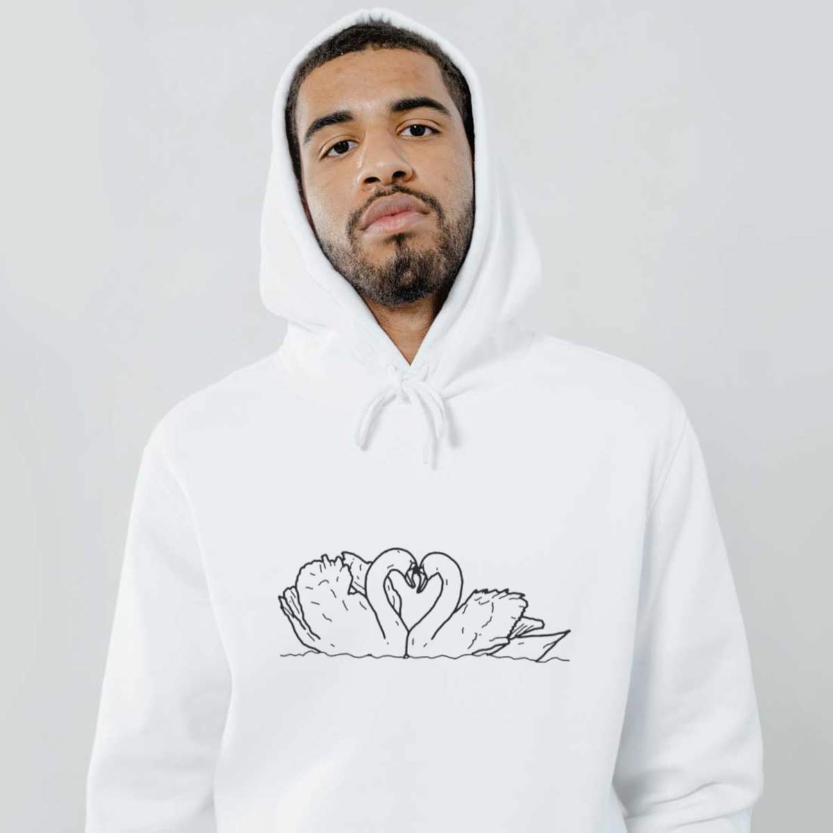 Small 'Love Swans' Adult Hoodie / Hooded Sweater (White) (HO00051217)